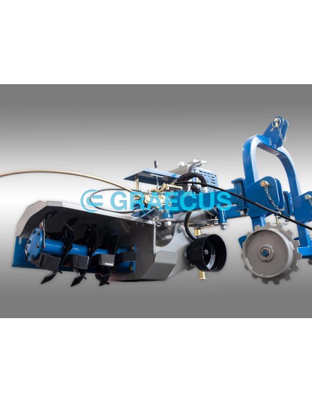 Το δενδροκομικό-αμπελουργικό φρεζάκι διαθέτει περιστρεφόμενο άξονα, μηχανική μετάδοση.