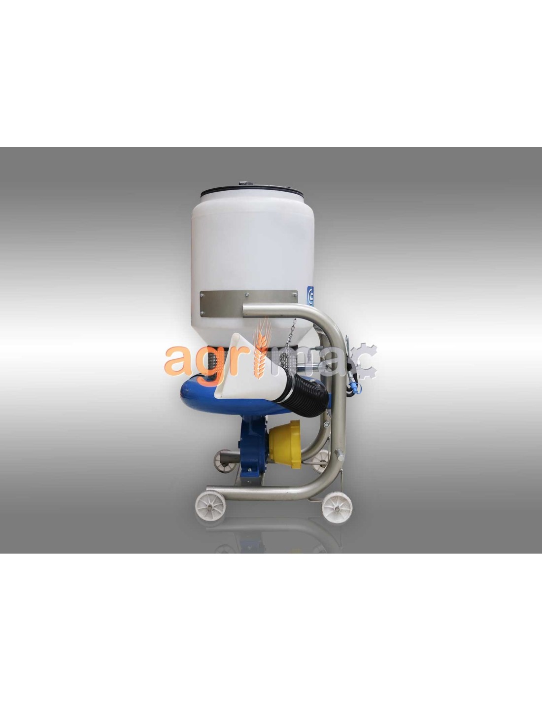 Πλεονεκτήματα και χαρακτηριστικά Ενισχυμένο κιβώτιο μετάδοσης (group) με σχέση (1:5,5) και μέγιστη ταχύτητα 3000 στροφές. Εσωτερικός γαλβανιζέ κοχλίας για την καταστροφή σβόλων στη δεξαμενή. Υψηλής ποιότητας χυτή τουρμπίνα αλουμινίου που προσφέρει ιδανικό βάρος και αντισκουριακές ιδιότητες. Μηχανισμός ρύθμισης ποσότητας εκτόξευσης. Υδραυλικά ανοιγόμενη κεντρική παροχή για χρήση πάνω από το τρακτερ και απαιτεί μία υδραυλική παροχή. Καπάκι δεξαμενής με βαλβίδα. Ροδάκια για εύκολη μετακίνηση. Ζεύξη τριών σημείων (ø 25,0-25,0mm) Ευρωπαϊκό πιστοποιητικό ασφαλείας CE. *Στην τιμή συμπεριλαμβάνεται ο άξονας κίνησης (PTO) T4-92 με πλαστικό κάλλυμα.*    Τεχνικά Xαρακτηριστικά Βάρος 150 kg Ίπποι 20 HP Πλάτος 1550 mm Μήκος 850 mm Ύψος 1400 mm Χωρητικότητα 150 λίτρα Απόσταση διανομής 5 - 15 m Ταχύτητα εργασίας 5 - 15 km/h