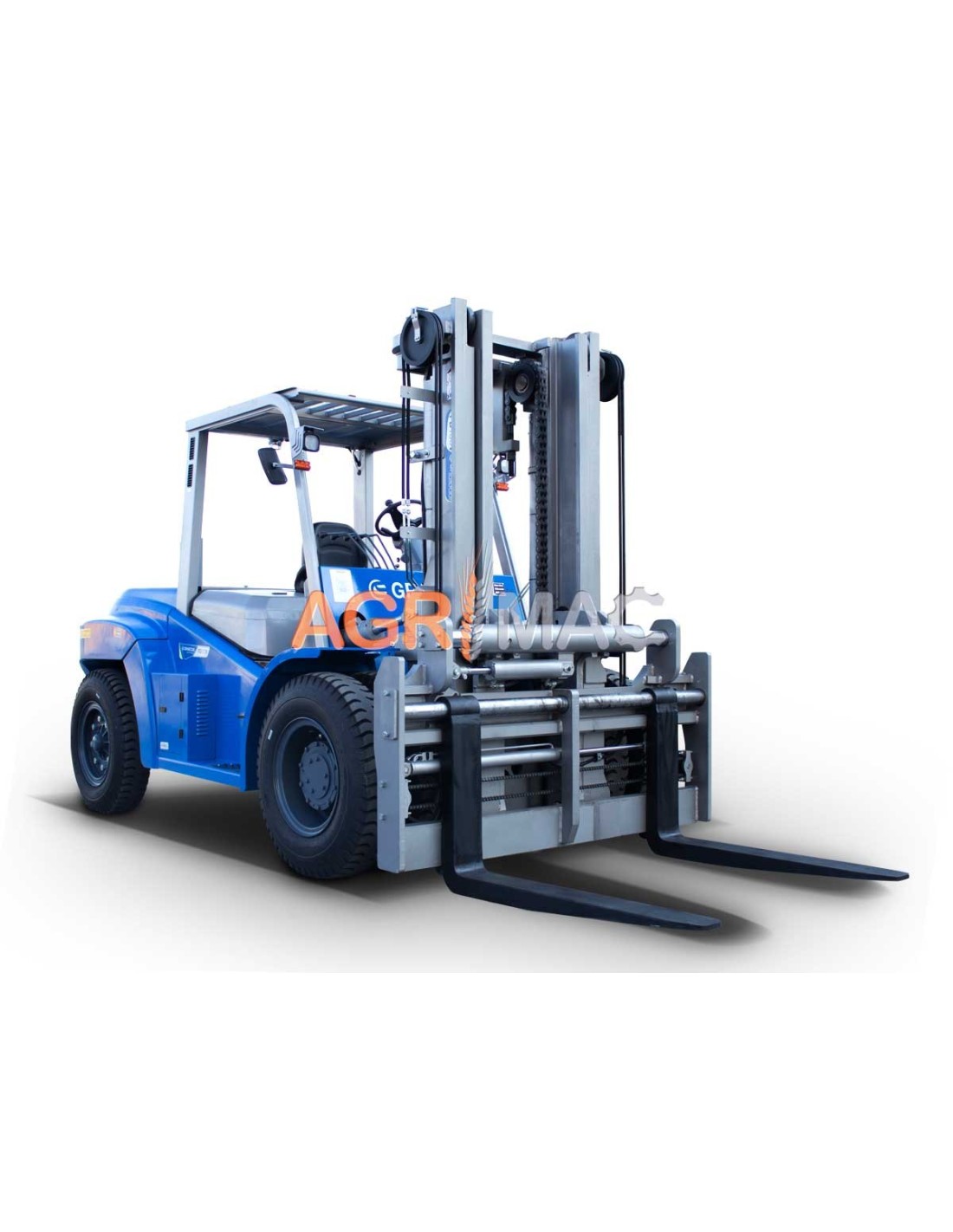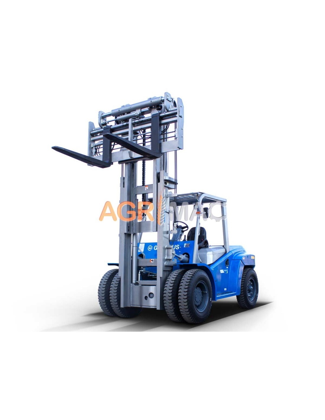 Πλεονεκτήματα και χαρακτηριστικά Νέας γενιάς κινητήρας από τον κολοσσό της Ασίας Yuchai STAGE V με χαμηλότερη κατανάλωση . Υδραυλική ρύθμιση πιρουνιών στον στάνταρ εξοπλισμό. Διπλοί μπροστινοί τροχοί. Γρήγορη εναλλαγή κατεύθυνσης με ηλεκτρουδραυλική ρεβέρσα. Ιστός 2 σταδίων ανύψωσης 3000mm. Ευρύχωρος χώρος δαπέδου και μεγαλύτερο σκαλοπάτι συμβάλουν στην ευκολότερη είσοδο και έξοδο από το μηχάνημα. Υδραυλικό σύστημα διεύθυνσης. Υδραυλική αντλία και βαλβίδες υψηλών προδιαγραφών. Εργονομικό σύστημα υδραυλικών χειριστηρίων και βαλβίδων. Νέος σχεδιασμός του προστατευτικού καλύμματος οροφής και ιστός μεγαλύτερου φάρδους εξασφαλίζουν μέγιστη ορατότητα και καλύτερο έλεγχο. Υδραυλικό τιμόνι μειωμένων στροφών μειώνει την κόπωση βελτιώνοντας τον έλεγχο. Πολυλειτουργικό κάθισμα ανάρτησης. Πνευματικά ελαστικά. Αποτελεσματικό υδραυλικό σύστημα. Σύγχρονο αυτόματο κιβώτιο ταχυτήτων. Υδραυλικό πεντάλ πέδησης. Ψηλά τοποθετημένα πίσω φώτα. Ευρωπαϊκό πιστοποιητικό ασφαλείας CE.    Τεχνικά Xαρακτηριστικά Βάρος 13640 kg Κινητήρας Yuchai Ισχύς κινητήρα 114hp Μήκος (χωρίς τα πιρούνια) 4252 mm Πλάτος 2268 mm Ύψος 2845 mm Ανυψωτική ικανότητα 10000 kg Μήκος περονών 1220 mm Ιστός duplex 3000mm ανύψωση