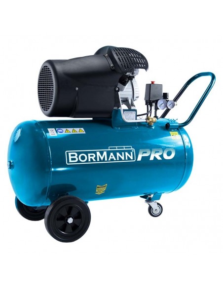 Blank pageΑεροσυμπιεστής Μονομπλόκ της BORMANN PROΑεροσυμπιεστής με δυνατό\nκινητήρα αλουμινίου μονομπλόκ με λάδι με δυνατότητα μεγάλης παροχής αέρα. Με\nδύο μανόμετρα για ένδειξη πίεσης αέρα καζανιού και εξόδου. Για κάθε χρήση\nεργαλείων αέρος, θα εξυπηρετήσει και τους πιο απαιτητικούς χρήστες. Το ελαφρύ\nκαζάνι του σε συνδυασμό με την εργονομική λαβή και το σετ τροχών που φέρει , το\nκαθιστούν εύκολο στη μεταφορά.Δυνατός Κινητήρας MONOBLOCK Αλουμινίου Δικύλινδρη Κεφαλή Μοτέρ Μεγάλη Ικανότητα Παροχής Με Ταχυσύνδεσμο Ρόδες για Εύκολη ΜεταφοράΔιαθέτει Ρυθμιστή Πίεσης
