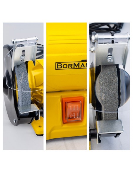 Blank pageΔίδυμος Τροχός 200W BORMANN PRO. Ιδανικό για διάφορες χρήσεις και συνθήκες εργασίας. Διαθέτει διάφανους προστατευτικούς προφυλακτήρες που εξασφαλίζουν μέγιστη ασφάλεια κατά την χρήση του. Διάφανοι προφυλακτήρεςΔιαστάσεις πέτρας: Φ150x20xΦ12.7mm