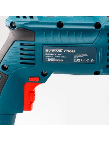 Blank page\nΔράπανο Κρουστικό της BORMANN PROΙσχυρός κινητήρας με κιβώτιο αλουμινίου.\nΔιαθέτει σκανδάλη μεταβλητής ταχύτητας με κλειδαριά ενεργοποίησης για\nπαρατεταμένη λειτουργία και έλεγχο στροφών. Με μεταλλικό αυτόματο τσοκ για\nγρήγορη αλλαγή. Ο μεταλλικός οδηγός βάθους εξυπηρετεί\nνα γίνεται η διάτρηση στο επιθυμητό σημείο. Η ρυθμιζόμενη\nπλευρική λαβή που διαθέτει, μπορεί να μετακινηθεί για καλύτερη αξιοποίηση σε\nσκληρές συνθήκες.Πρακτική Χειρολαβή Για Σταθερό ΚράτημαΜε Μεγάλη Ισχύ 920w Με Αυτόματο Μεταλλικό Τσόκ για Ευκολία, Ταχύτητα και Μεγάλη Αντοχή