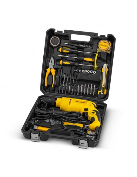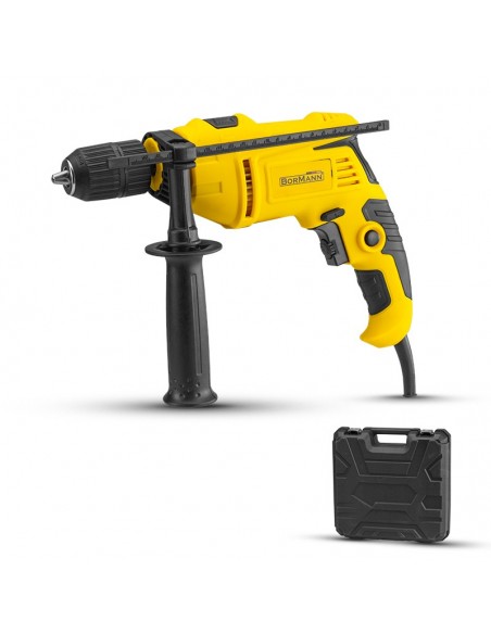 Δράπανο 650W BORMANN Lite.• Τσοκ με κλειδί : 13mm• Ικανότητα διάτρησης: Σκυρόδεμα/χάλυβας/ξύλο: 16/13/25mm• Καλώδιο Vde: 2m• Αξεσουάρ:-6x τρυπάνια σιδήρου: 3/4/5/6/8/10mm-5x τρυπάνια μπετού: 4/5/6/8/10mm-6x τρυπάνια ξύλου: 3/4/5/6/8/10mm-9x 25mm μύτες -Αντάπτορας για μύτες-Σουγιάς-Κατσαβίδι για μύτες-Μονωτική Ταινία-Μέτρο: 3m-Αλφάδι 220mm-Γαλλικό κλειδί 200mm-Πένσα 160mm-Σφυρί προκοβγάλτης-Κουτί με Βύσματα 60τεμ.-Σετ κάρβουνα -Κλειδί τσοκ-Οδηγός βάθους-Βοηθητική λαβή