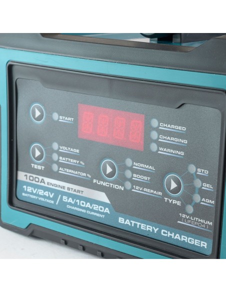 Blank pageΦορτιστής - Συντηρητής - Εκκινητής Μπαταριών της BORMANN PROΦορτιστής με δυνατότητες συντήρησης και εκκίνησης μπαταριών με οθόνη LCD 10s με αναλυτικές ενδείξεις λάθους και λειτουργία ανάκτησης για μπαταρίες 12V. • Λειτουργία Ελέγχου Δυναμό (CCA) & Αυτόματη • Κατάλληλο για Μπαταρίες Μολύβδου 12/24V (WET/MF/CA/EFB/GEL/AGM)• Τάση Εξόδου 12/24VDC, 5/10/20A • Χωρητικότητα Μπαταριών\n350Ah• Ελάχιστη Τάση Φόρτισης 3V