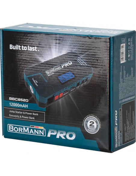 Blank pageΕκκινητής & Power Bank της BORMANN PRO• 12V Εκκίνηση, κατάλληλο για αυτοκίνητα έως και 4.000κ.εκ.\n• Πάνω από 50 εκκινήσεις στα περισσότερα οχήματα (Σε πλήρη φόρτιση)\n• Σύστημα Προστασίας από Υπερθέρμανση • Προστασία από Αντίστροφη Πολικότητα\n• 2 Είσοδοι | 19V/3.5A για Laptops\n12V/10A για Φορητές Συσκευές • Χρόνος Ζωής >1000 Εκκινήσεις