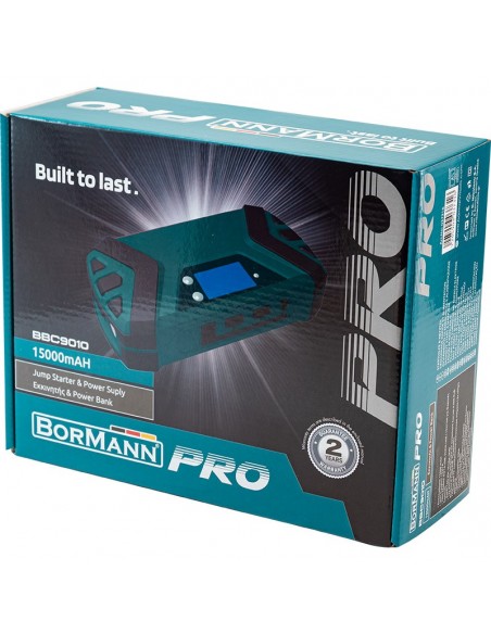 Blank pageΕκκινητής & Power Bank της BORMANN PRO• 12V Εκκίνηση, κατάλληλο για αυτοκίνητα έως και 6.000κ.εκ. Βενζίνης & 5.000κ.εκ\nΠετρελαίου • Πάνω από 70 εκκινήσεις στα περισσότερα οχήματα (Σε πλήρη φόρτιση)\n• Σύστημα Προστασίας από Υπερθέρμανση • Προστασία από Αντίστροφη Πολικότητα\n• Oθόνη LCD με ένδειξη εσφαλμένης σύνδεσης • Περίβλημα TPE, Προστασία Πτώσης\n• Μέγιστο Ρεύμα 600A • Χρόνος Ζωής >1000 Εκκινήσεις