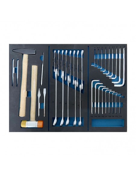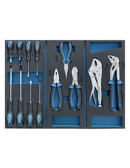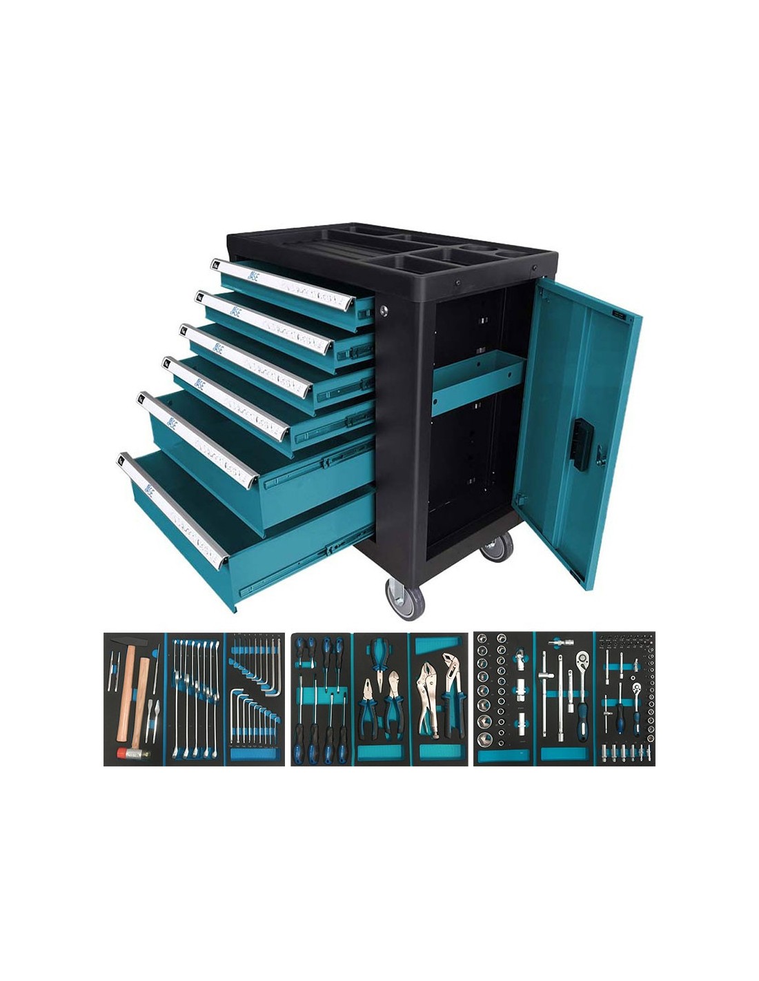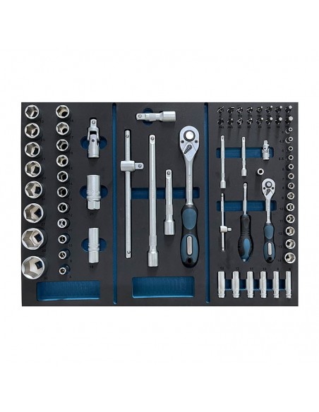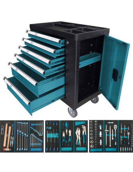 Blank page\n\n4-Μικρά συρτάρια, 53.1x39.5x5.8cm2-μεγάλα συρτάρια, 53.1x39.5x12.8cmΤροχοί PP 5 \"\" x1.25 \", 2 σταθεροί και 2\nπεριστρεφόμενοι με φρένο19x Καρυδάκια ½\": 8-22, 24, 27, 30, 32mm2x Καρυδάκια για\nΜπουζί ½\" 16mm,21mm3x Προεκτάσεις\n½\" 75mm, 150mm\n, 250mm1x Ολισθαίνουσα\nΜανέλα Ταφ ½\" 250mm1x Αρθωτός Σύνδεσμος ½\"1x Καστάνια ½\",\n72 Δόντια13x Καρυδάκια\n1/4\": 4, 4.5, 5, 5.5, 6, 7-14mm6x Καρυδάκια Μακρύλαιμα 1/4\": 8, 9, 10, 11, 12,\n13mm2x\nΠροεκτάσεις 1/4\" 100mm, 150mm 1x Ολισθαίνουσα\nΜανέλα Ταφ 1/4\'\'1x Αρθωτός Σύνδεσμος 1/4\'\'1x Αντάπτορας για Μύτες ?\"\n\n1x Καστάνια 1/4\'\', 72\nΔόντια16x Μύτες\n1/4\'\' : PH2, PH3 - SL4, SL6 – Άλλεν:\n2, 3, 4, 5, 6, 8mm - Torx: T10, 15, 20,\n25, 30, 401x Κατσαβίδι\nΜυτών 1/4\'\' 150mm4x Κατσαβίδια\nΊσια : 6x38, 5x75, 6x100, 8x150mm4x Κατσαβίδια\nΣταυρού : PH2x38, PH1x75, PH2x100, PH3x150mm1x Μυτοτσίμπιδο (150mm)1x Πλαγιοκόφτης (150mm)1x Πένσα (180mm)1x Πένσα Grip (250mm)1x Γκαζοτανάλια (250mm)9x Κλειδιά\nΆλλεν : 1.5, 2, 2.5, 3, 4, 5, 6, 8, 10mm9x Κλειδιά Torx : T10-15-20-25-27-30-40-45-5013x Γερμανοπολύγωνα\n: 6, 8-15, 17,\n19, 21, 22mm1x Σφυρί 300g, TUV/GS1x Ματσόλα 35mm5x Καλέμια και Βελόνια\n\n\n\n\n\n\n\n\n\n\n\n\n\n\n\n\n\n\n\n\n\n\n\n\n\n\n\n\n\n\n\n\n\n\n\n\n\n\n\n\n\n\n\n\n\n\n\n\n\n\n\n\n\n\n\n\n\n\n\n\n\n