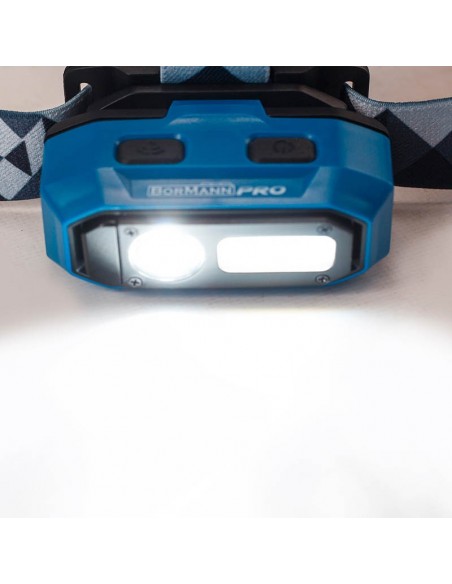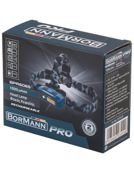 Blank page\n\nΕπαναφορτιζόμενος φακός LED κεφαλής υψηλής\nφωτεινότητας. Ελαφρύς και αδιάβροχος με πλαστικό περίβλημα και μεγάλης\nδιάρκειας μπαταρία. Κατάλληλος για απαιτητικές εργασίες, για το σπίτι, το\nποδήλατο, το σκάφος. Διαθέτει ανιχνευτή κίνησης για μεγαλύτερη ευκολία χρήσης\nκαι δυνατότητα επιλογής επιπέδων για τις απαιτήσεις κάθε χρήσης. \n\nΕπαναφορτιζόμενος προβολέας LED από την BORMANN PRO•Πολλαπλές λειτουργίες φωτισμού : Υψηλή-χαμηλή-COB On-All On-OFF•Ένταση : 800Lm (SST40) -250Lm (COB) -1000Lm (ALL On)•Μεγάλης διαρκειάς μπαταρία: 18650 3,7V 2200mAh Li-Ion•Εξαιρετική διάρκεια φωτισμού : 2 ώρες (SST40) -4,5 ώρες (COB) -1 ώρα (SST40 + COB)•Ελάχιστο Βάρος για άνετη πολύωρη χρήση : 129g•Χρόνος επαναφόρτισης: ±4 ώρες•Επίπεδο αδιαβρoχοποίησης :IP54•Βολικος Μαγνήτης για τοποθέτηση σε οποιαδήποτε μεταλλική επιφάνεια•Ανιχνευτής κίνησης για άνοιγμα με το ένα χέρι•Θύρα φόρτισης Micro USB•Περιλαμβάνει καλώδιο φόρτισης USB micro
