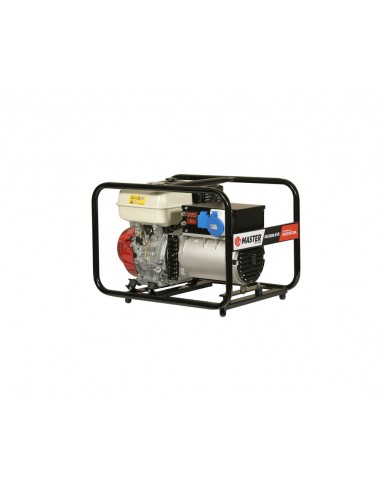 Βενζινοκίνητο μονοφασικό ηλεκτροπαραγωγό ζεύγος MASTER. Με υψηλής απόδοσης εναλλάκτη Ιταλίας, σε ελληνικής κατασκευής μεταλλική βάση με ηλεκτροστατική βαφή και αντιδόνηση. Με βολτόμετρο, ασφάλειες προστασίας από υπερφόρτωση και πολλαπλές εξόδους παροχής ρεύματος. Διατίθεται κιτ μετατροπής σε τροχήλατο ως αξεσουάρ.