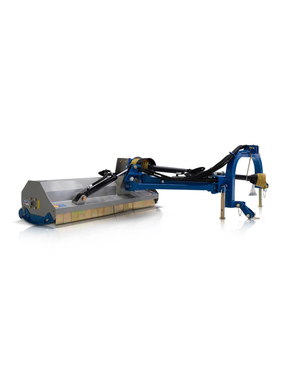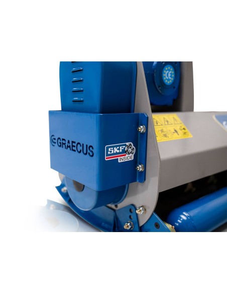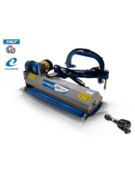 Πλεονεκτήματα και χαρακτηριστικά Πλευρικός καταστροφέας. Ειδικής σκλήρυνσης σφυριά 450g, ενδείκνυται για χόρτα και κλαδιά διαμέτρου εως 3εκ. Κιβώτιο μετάδοσης κίνησης (γκρουπ) Τ311 της ιταλικής εταιρίας “COMER”, με καστάνια. Μακράς διάρκειας ζωής ρουλεμάν SKF. Ψηφιακά ζυγισμένο στροφείο με σφυριά ή μαχαίρια. Εμπρόσθια προστατευτικά λαμάκια. Προσαρμογή ύψους εργασίας από τα πέδιλα/γλύστρες. Ρυθμιζόμενο ράουλο στο πίσω μέρος. Μετάδοση κίνησης με οδοντωτούς ιμάντες και εξωτερικό τεντωτήρα. Βάση στήριξης. Διεθνή ζεύξη τριών σημείων κατηγορίας Ι (ø 19.0-22.0mm ). Ευρωπαϊκό πιστοποιητικό ασφαλείας CE. *Στην τιμή συμπεριλαμβάνεται ο άξονας κίνησης (PTO) T4-140 με πλαστικό κάλυμμα.*    Τεχνικά Xαρακτηριστικά Βάρος 318 kg Ίπποι 35 - 55 HP A 760 mm B 1020 mm C 1780 mm D 1300 mm E 2200 mm Πλάτος Εργασίας 1650 mm Σφυριά 28 τεμ. Μαχαίρια (προαιρετικά) 56 τεμ. Στροφείο 108*8 Ιμάντες 4 τεμ.