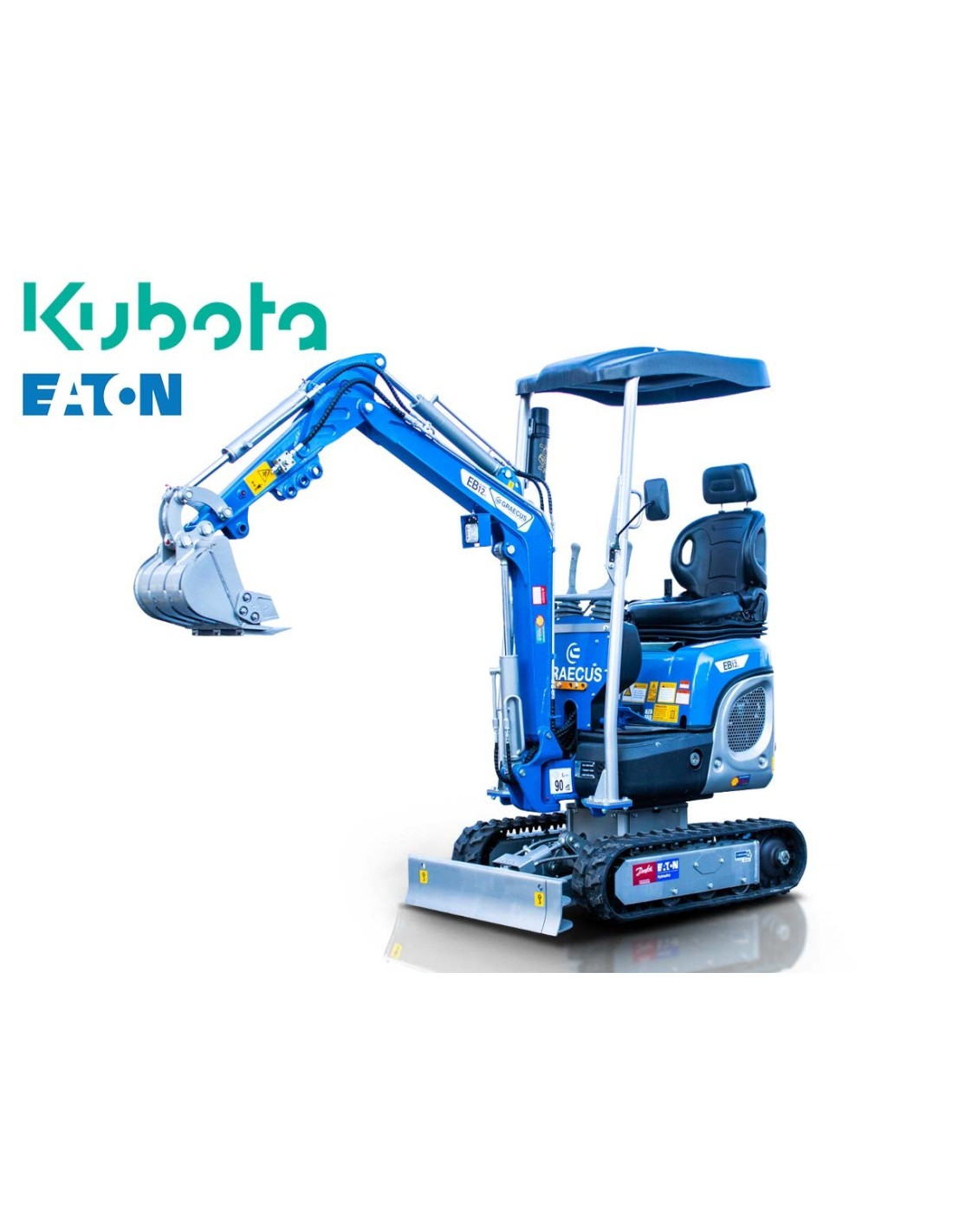Μικρός ερπυστριοφόρος εκσκαφέας 1.2T, Diesel Kubota, με περιστροφή στην μπούμα, πτυσσόμενες ερπύστριες και γραμμή σφύρας EB12-X