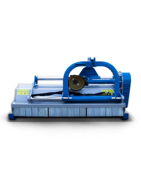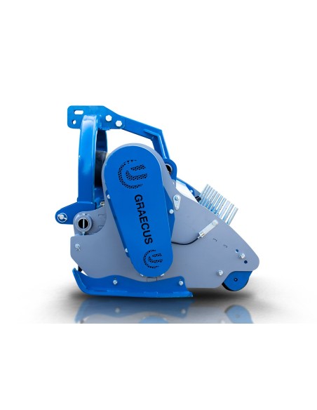 Πλεονεκτήματα και χαρακτηριστικά Άθραυστα σφυριά 1200g ενδείκνυται για χόρτα και κλαδιά διαμέτρου εως 9εκ. Κιβώτιο μετάδοσης κίνησης (γκρουπ) 540r/min GRAECUS, με καστάνια. Μακράς διάρκειας ζωής ρουλεμάν NSK. Ψηφιακά ζυγισμένο στροφείο με δύο ελικοειδείς σειρές σφυριών ή μαχαίριών. Εμπρόσθια προστατευτικά λαμάκια. 2 σειρές σημεία κοπής στο εσωτερικό του σκάφους πετυχαίνουν καλύτερο τεμαχισμό των κλαδιών και των χόρτων. Ρυθμιζόμενες λεπίδες συλλογής στο πίσω μέρος. Προσαρμογή ύψους εργασίας από τα πέδιλα/γλύστρες. Ρυθμιζόμενο ράουλο στο πίσω μέρος με ξύστρα. Μετάδοση κίνησης με οδοντωτούς ιμάντες και εξωτερικό τεντωτήρα. Διεθνή ζεύξη τριών σημείων – κατηγορίας ΙΙ(ø 25.0-28.0mm). Ευρωπαϊκό πιστοποιητικό ασφαλείας CE. *Στην τιμή συμπεριλαμβάνεται ο άξονας κίνησης (PTO) T8-95 με πλαστικό κάλυμμα.*    Τεχνικά Xαρακτηριστικά Βάρος 852 kg Ίπποι 75 - 120 HP Πλάτος 2680 mm Μήκος 1095 mm Ύψος 1028 mm Πλάτος Εργασίας 2450 mm Μετατόπιση ← mm 1176/1505  ||  676/2005 mm  → Σφυριά 26 τεμ. Μαχαίρια (προαιρετικό) 52 τεμ. Στροφείο 168*10 mm Ιμάντες 5 τεμ.