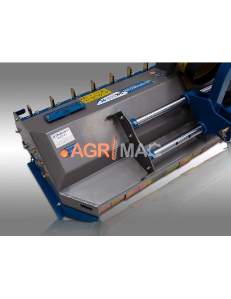 Πλεονεκτήματα και χαρακτηριστικά\n\n[row ]\n\n[col span=\"1/2\" ]\n\n Ειδικής σκλήρυνσης σφυριά 800g, ενδείκνυται για χόρτα και κλαδιά διαμέτρου εως 5εκ.\n Καινοτόμος κατασκευή του συστήματος ζεύξης προσφέρει επιπλέον μετατόπιση.\n Χαμηλό προφίλ για καθαρισμό κοντά στις ρίζες, χωρίς παρέκκλιση από τη πορεία του τρακτέρ και χωρίς κίνδυνο...
