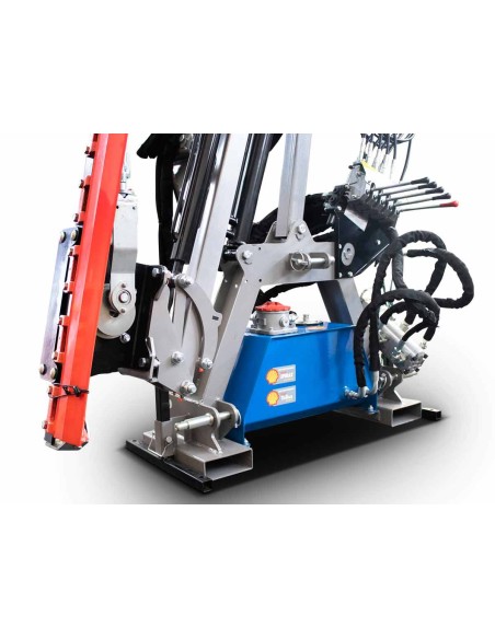 Βραχίονας κατασκευασμένος ώστε να λειτουργεί και στις δύο πλευρές (δεξιά - αριστερά) με δυνατότητα χρήσης και στο εμπρόσθιο τμήμα του τρακτέρ. Πολύ εύκολο στην χρήση υδραυλικά πτυσσόμενο μπράτσο 3,5 μέτρων ιδανικό για την διατήρηση μικρών θάμνων, δέντρων και άλλων ειδών βλάστησης με μέγιστη διάμετρο κοπής 2-3cm. Η διπλή υδραυλική αντλία επιτρέπει αποτελεσματικό κόψιμο με ταυτόχρονη κίνηση του βραχίονα. Αναστρέψιμος σκελετός 4 υδραυλικών κινήσεων. Απομακρυσμένος έλεγχος με χειριστήριο 5 μοχλών. Μπορεί να χρησιμοποιηθεί χωρίς καμπίνα με ασφάλεια ακόμα και στα πιο μικρά τρακτέρ, επειδή, σε αντίθεση με ένα καταστροφέα δεν εκτοξεύει υψηλής ταχύτητας υπολείμματα.