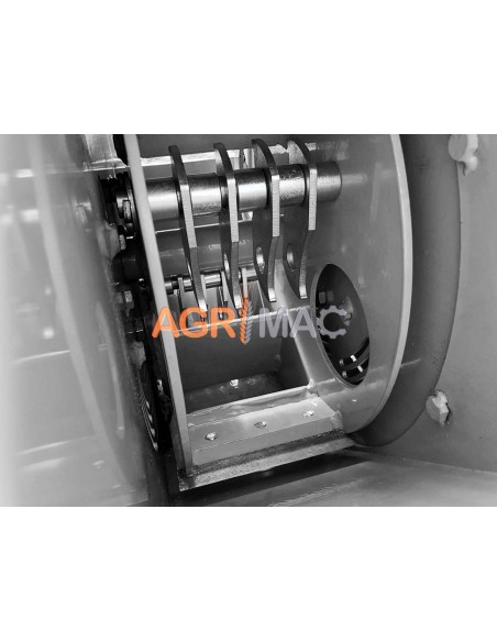 Το τύμπανο είναι εφοδιασμένο με 2 υψηλής σκλήρυνσης μαχαίρια και 2 σειρές τεσσάρων σφυριών συνδυάζοντας τη χρήση 2 μηχανημάτων κλαδοτεμαχιστή - βιοθρυμματιστή.