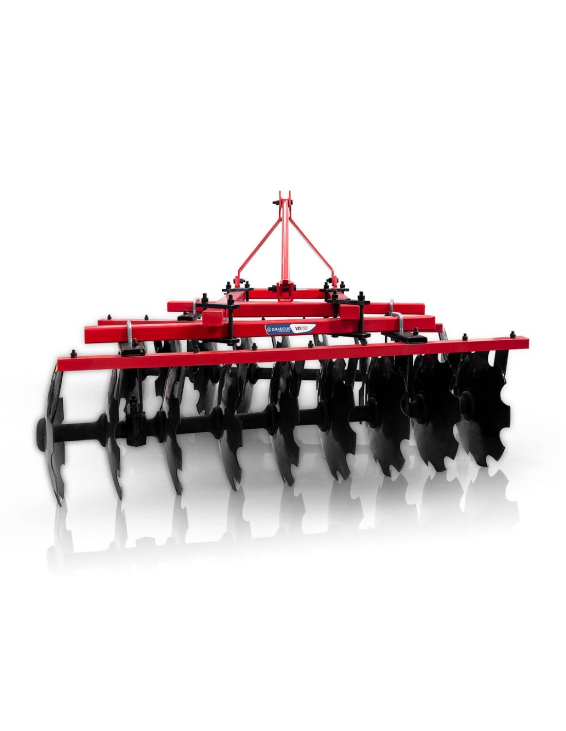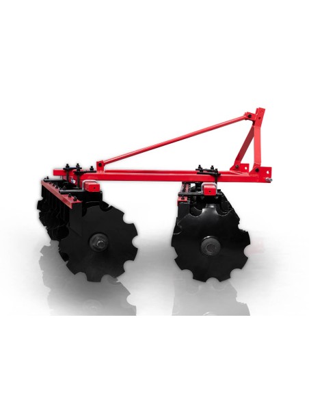 Πλεονεκτήματα και χαρακτηριστικά Ανθεκτικό πλαίσιο με ρύθμιση των γωνιών εργασίας. Αποτελείται από 2 άξονες σε σχήμα V Οδοντωτοί δίσκοι στο μπροστά και πίσω άξονα. Δίσκοι πάχους 3 χιλ. Τετράγωνος άξονας πάχους 32χιλ. Κουζινέτα κλειστού τύπου με γρασαδοράκι. Διεθνή ζεύξη τριών σημείων - κατηγορίας I(ø 19.0-22.0mm). Ευρωπαϊκό πιστοποιητικό ασφαλείας CE.    Τεχνικά Xαρακτηριστικά Βάρος 174 kg Ίπποι 10 - 30 HP Πλάτος 1100 mm Μήκος 1800 mm Ύψος 1120 mm Δίσκοι 12 τεμ. Πλάτος εργασίας 1100 mm Διάμετρος δίσκου 460 mm