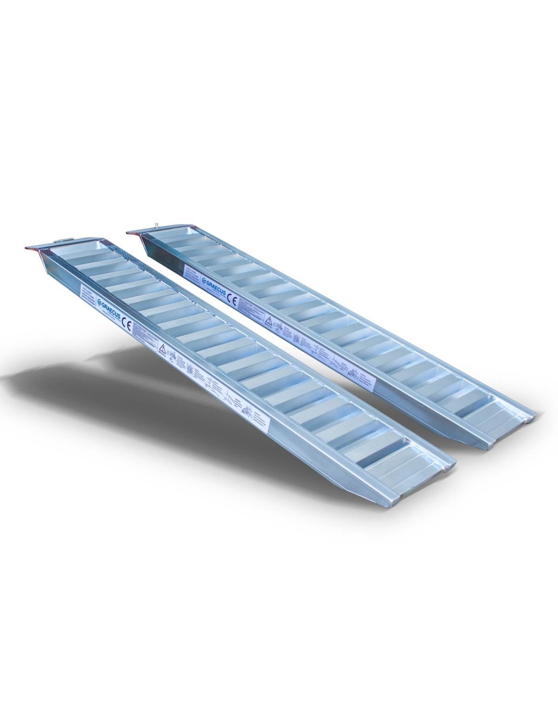 2 Ράμπες αλουμινίου μήκους 2500mm για λαστιχοφόρο ή ερπυστριοφόρο μηχάνημα απόβαρου 3000kg