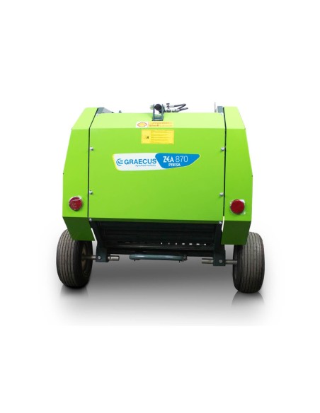 Σε σύγκριση με τα τετράγωνα χορτοδετικά, το GRAECUS ZEA PRESA 870 έχει μικρότερες διαστάσεις, ώστε να μπορεί να λειτουργήσει σε περιορισμένους χώρους, απότομες πλαγιές ή στενά περάσματα κ.λπ.