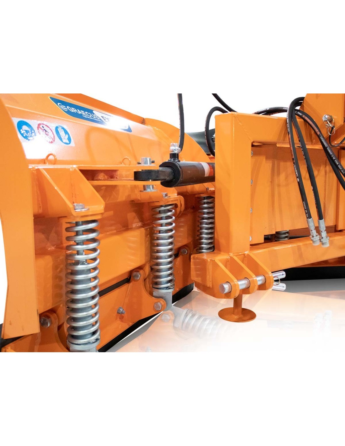 Πλεονεκτήματα και χαρακτηριστικά Υδραυλικά ελεγχόμενο μαχαίρι, αποτελούμενο από δύο λεπίδες με τέσσερις διαφορετικές θέσεις εργασίας (ανοιχτή, κλειστή, αριστερά και δεξιά). Ζεύξη 3 σημείων (ανύψωση με την κίνηση των εμπρόσθιων υδραυλικών του τρακτέρ). Καουτσούκ με σύστημα ταλάντωσης που επιτρέπει τέλεια πρόσφυση στο οδόστρωμα. Αντικραδασμικό σύστημα 4 ελατηρίων για μέγιστη ασφάλεια. Εναλλάξιμο λάστιχο καουτσούκ. Εξαιρετικά εύκολη εγκατάσταση και χρήση. Βάση στήριξης. Ευρωπαϊκό πιστοποιητικό ασφαλείας CE.    Τεχνικά Xαρακτηριστικά Βάρος 380 kg Ίπποι 50 - 90 HP Πλάτος 2540 mm Μήκος 870 mm Ύψος 1020 mm A 2540 mm B 2400 mm Ύψος μαχαιριού 920 mm Λάμα 265*50 mm