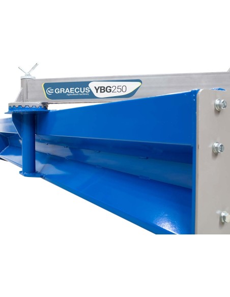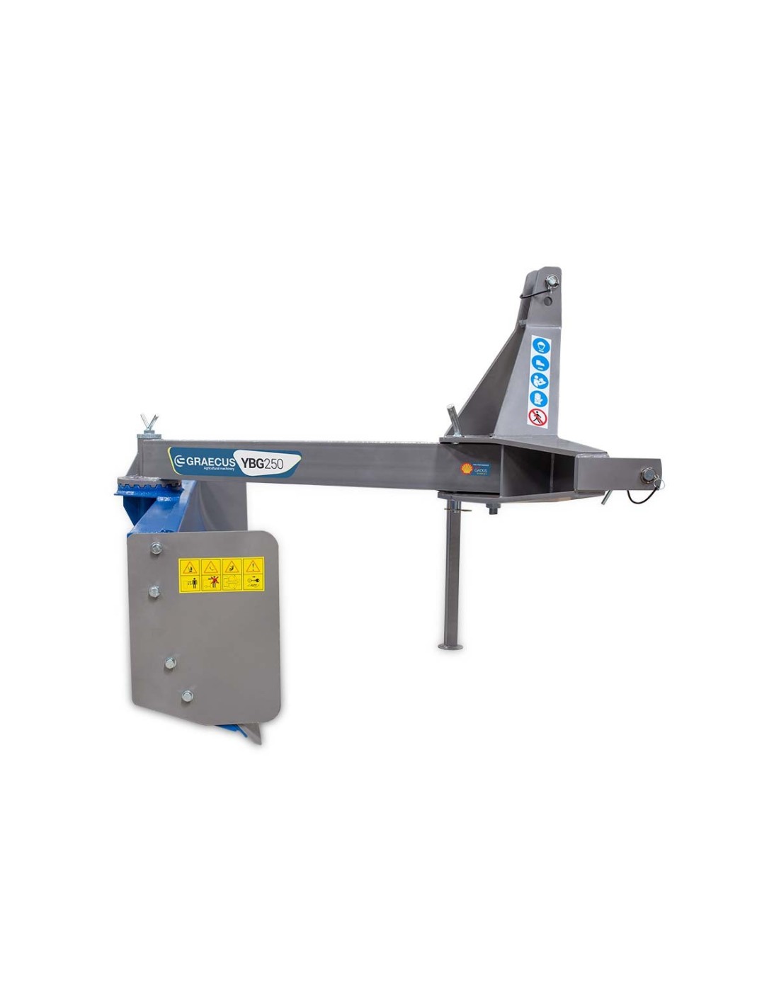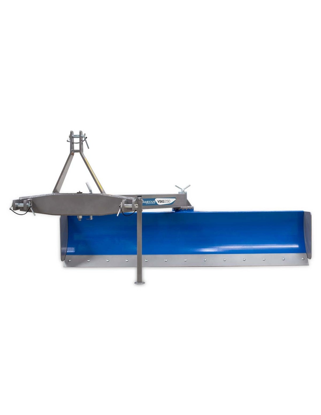 Πλεονεκτήματα και χαρακτηριστικά Περιστρεφόμενη λεπίδα 360º για εμπρόσθια και οπίσθια χρήση. Μύλος για εύκολη περιστροφή, πάνω σε υψηλής αντοχής οδοντωτές πλάκες. Ο βραχίονας μπορεί να μετατοπιστεί έξω από το τρακτερ( αριστερά ή δεξιά), εύκολα και γρήγορα με χρήση πείρου σε πλάκες. Απόσπόμενα πλευρικά προστατευτικά. Κοιλοδοκός ενίσχυσης στη μέση του πίσω μέρους της λεπίδας YBG160 - 200. Διπλή ενίσχυση στο πίσω μέρος του μηχανήματος YBG225 - 250. Μαχαίρι ειδικής σκλήρυνσης. Εναλλάξιμο μαχαίρι. Βάση στήριξης. Διεθνή ζεύξη τριών σημείων – Κατηγορίας I-II(ø 19.0-22.0mm / 25.0-28.0mm). Πιστοποιητικό ασφαλείας CE.    Τεχνικά Xαρακτηριστικά Βάρος 370 kg Ίπποι 60 - 100 HP Πλάτος 2520 mm Μήκος 1770 mm Ύψος 1200 mm Πλάτος εργασίας 2500 mm Ύψος μαχαιριού 550 mm Λάμα 150*15 mm