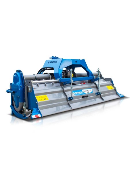 Πλεονεκτήματα και χαρακτηριστικά Μαντεμένιο κιβώτιο μετάδοσης 60άρι, με ενισχυμένο κορωνοπήνιο ( group) 540r/ min. Καινοτόμος κατασκευή του συστήματος ζεύξης προσφέρει επιπλέον υδραυλική μετατόπιση. Τα μοντέλα multi έχουν βαρέως κιβώτιο μετάδοσης κίνησης τεσσάρων ταχυτήτων (group). Τα μοντέλα multi έχουν 4 επιλογές στροφών μαχαιροφόρου άξονα 187/ 207/ 229/ 254 rpm. Πλευρικό σύστημα μετάδοσης κίνησης με γρανάζια σε λουτρό λαδιού. Μακράς διάρκειας ζωής ρουλεμάν. Μαντεμένια προστατευτικά στα ρουλεμάν του μαχαιροφόρου. Ρυθμιζόμενη πόρτα στο πίσω μέρος με διπλά ελατήρια για καλύτερη ισοπέδωση. Ειδικής σκλήρυνσης μαχαίρια 800g. Προσαρμογή βάθους εργασίας από τα πέδιλα/γλύστρες. Βάση στήριξης. Διεθνή ζεύξη τριών σημείων - κατηγορίας I-II(o 19.0-22.0mm / 25.0-28.0mm). Ευρωπαϊκό πιστοποιητικό ασφαλείας CE. *Στην τιμή συμπεριλαμβάνεται ο άξονας κίνησης (PTO) T7-80 με συμπλέκτη θερμουίτ.*    Τεχνικά Xαρακτηριστικά Βάρος 496 kg Ίπποι 50 - 90 HP Πλάτος 1955 mm Μήκος 930 mm Ύψος 1005 mm Πλάτος Εργασίας 1600 mm Μετατόπιση - Μαχαίρια 24 + 24 τεμ. Σειρές μαχαιριών 8 Βάθος εργασίας 100 - 210 mm