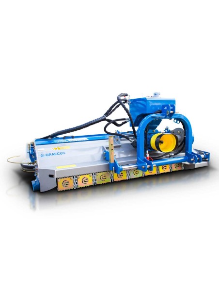 Πλεονεκτήματα και χαρακτηριστικά   Νέος ενισχυμένος βαρέως τύπου καταστροφέας με διπλό σκάφος 5+4mm, πλαινά 8mm και στροφείο 160*10mm. Άθραυστα σφυριά 1200g ενδείκνυνται για χόρτα και κλαδιά διαμέτρου εως 8εκ. Πλάγιος χορτοκοπτικός δίσκος υδραυλικά μετατοπιζόμενος με κεραία. Γρήγορη αλλά και ταυτόχρονα ομαλή επαναφορά χωρίς να πληγώνει την καλλιέργεια. Αυτόνομη υδραυλική αντλία με δοχείο λαδιού. Κιβώτιο μετάδοσης κίνησης (γκρουπ) 540 r/min “JCTT”, με καστάνια. Καινοτόμος κατασκευή του συστήματος ζεύξης προσφέρει επιπλέον μετατόπιση. Μακράς διάρκειας ζωής ρουλεμάν SKF. Διπλή επένδυση στο πάνω μέρος. Ρυθμιζόμενες λεπίδες συλλογής στο πίσω μέρος. 1 πόρτα μηχανικά η υδραυλικά ανοιγόμενη (προαιρετικό) . Ψηφιακά ζυγισμένο στροφείο με δύο ελικοειδείς σειρές σφυριών ή μαχαίριών. Εμπρόσθια προστατευτικά λαμάκια. Το σκάφος είναι εφοδιασμένο εσωτερικά με μία οδοντωτή λάμα για την επίτευξη καλύτερου τεμαχισμού. Προσαρμογή ύψους εργασίας από τα πέδιλα/γλύστρες. Ρυθμιζόμενο ράουλο στο πίσω μέρος με ξύστρα. Μετάδοση κίνησης με 5 οδοντωτούς ιμάντες και εξωτερικό τεντωτήρα. Βάση στήριξης. Διεθνή ζεύξη τριών σημείων κατηγορίας Ι-ΙΙ (ø 25.0- 22.0mm/28.0mm) Ευρωπαϊκό πιστοποιητικό ασφαλείας CE.     *Στην τιμή συμπεριλαμβάνεται ο άξονας κίνησης (PTO) T5-100 με πλαστικό κάλυμμα.*    Τεχνικά Xαρακτηριστικά Βάρος 748 kg Ίπποι 55 - 100 HP Πλάτος 2300 mm Μήκος 1162 mm Ύψος 968 mm Πλάτος Εργασίας 2000 mm Μετατόπιση ← mm 598/1428  ||  250/1776 mm  → Σφυριά 20 Μαχαίρια (προαιρετικό) 40 Στροφείο Ø 160*10 Διάμετρος πίσω κυλίνδρου Ø 152*6 Ιμάντες 5