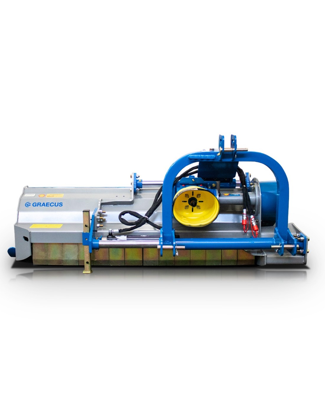 Πλεονεκτήματα και χαρακτηριστικά   Νέος ενισχυμένος βαρέως τύπου καταστροφέας με διπλό σκάφος 5+4mm, πλαινά 8mm και στροφείο 160*10mm. Άθραυστα σφυριά 1200g ενδείκνυνται για χόρτα και κλαδιά διαμέτρου εως 8εκ. Καινοτόμος κατασκευή του συστήματος ζεύξης προσφέρει επιπλέον μετατόπιση. Κιβώτιο μετάδοσης κίνησης (γκρουπ) της ιταλικής εταιρίας “Comer”, με καστάνια. Μακράς διάρκειας ζωής ρουλεμάν SKF. Διπλή επένδυση στο πάνω μέρος. Ρυθμιζόμενες λεπίδες συλλογής στο πίσω μέρος. 1 πόρτα μηχανικά η υδραυλικά ανοιγόμενη (προαιρετικό) . Ψηφιακά ζυγισμένο στροφείο με δύο ελικοειδείς σειρές σφυριών ή μαχαίριών. Εμπρόσθια προστατευτικά λαμάκια. Το σκάφος είναι εφοδιασμένο εσωτερικά με μία οδοντωτή λάμα για την επίτευξη καλύτερου τεμαχισμού. Προσαρμογή ύψους εργασίας από τα πέδιλα/γλύστρες. Ρυθμιζόμενο ράουλο στο πίσω μέρος με ξύστρα. Μετάδοση κίνησης με 5 οδοντωτούς ιμάντες και εξωτερικό τεντωτήρα. Βάση στήριξης. Διεθνή ζεύξη τριών σημείων κατηγορίας Ι-ΙΙ (ø 25.0- 22.0mm/28.0mm) Ευρωπαϊκό πιστοποιητικό ασφαλείας CE.     *Στην τιμή συμπεριλαμβάνεται ο άξονας κίνησης (PTO) T5-100 με πλαστικό κάλυμμα.*    Τεχνικά Xαρακτηριστικά Βάρος 652 kg Ίπποι 65 - 100 HP Πλάτος 2500 mm Μήκος 1162 mm Ύψος 968 mm Πλάτος Εργασίας 2200 mm Μετατόπιση ← mm 598/1628  ||  250/1976 mm  → Σφυριά 22 Μαχαίρια (προαιρετικό) 44 Στροφείο Ø 160*10 Διάμετρος πίσω κυλίνδρου Ø 152*6 Ιμάντες 5