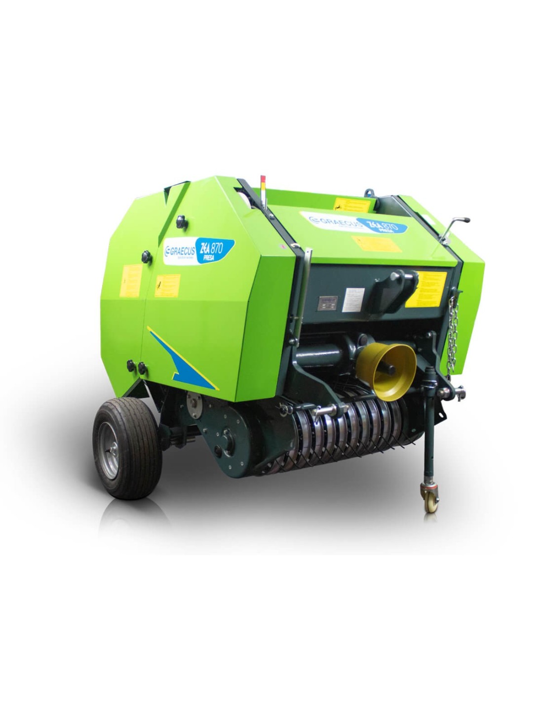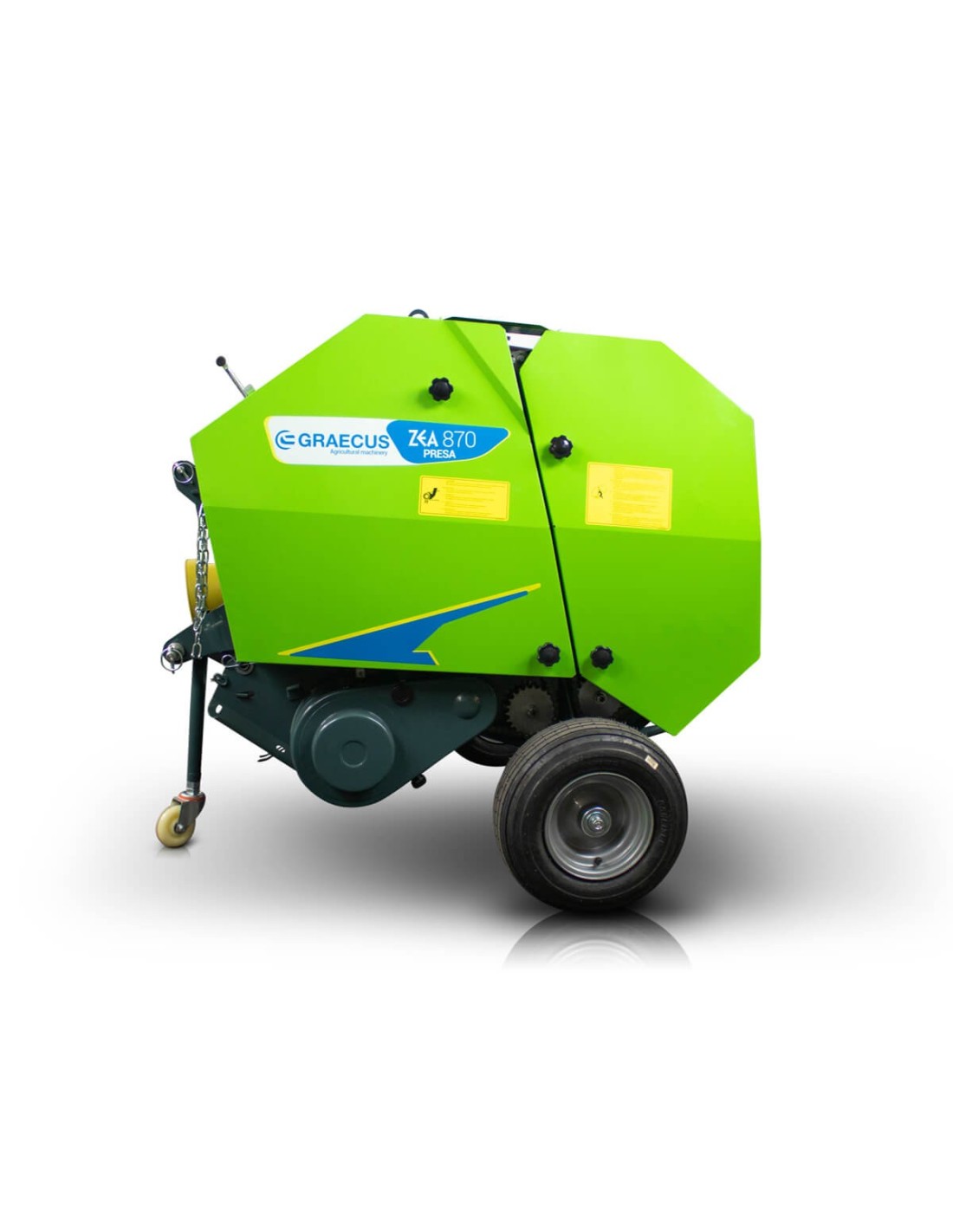 Σε σύγκριση με τα τετράγωνα χορτοδετικά, το GRAECUS ZEA PRESA 850 έχει μικρότερες διαστάσεις, ώστε να μπορεί να λειτουργήσει σε περιορισμένους χώρους, απότομες πλαγιές ή στενά περάσματα κ.λπ.