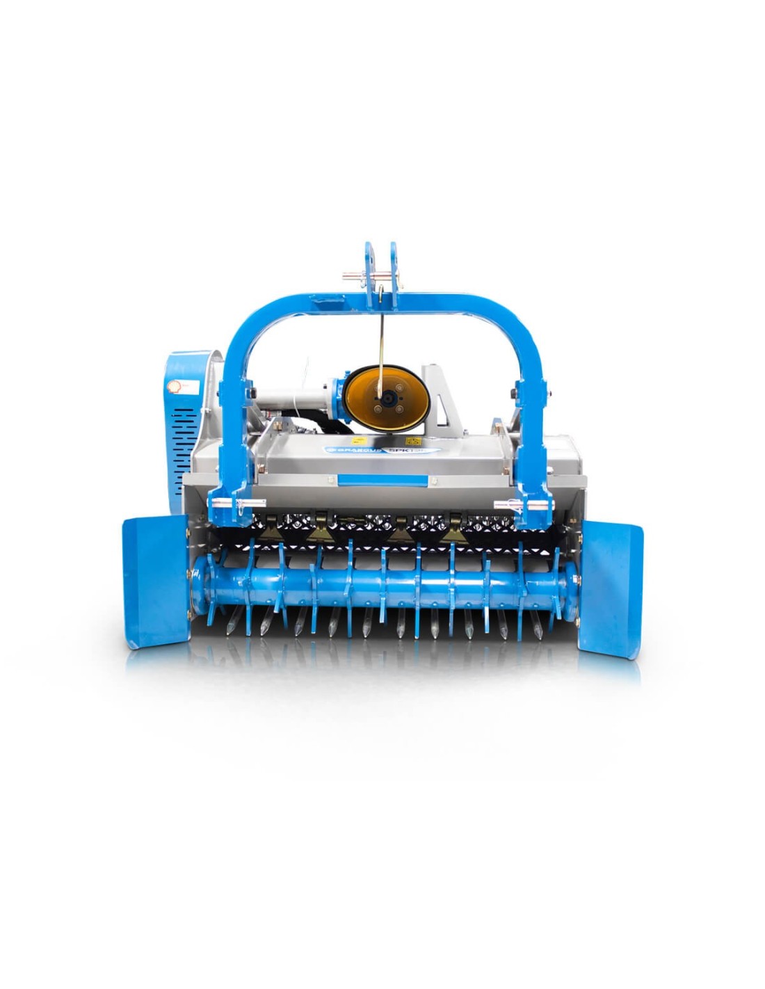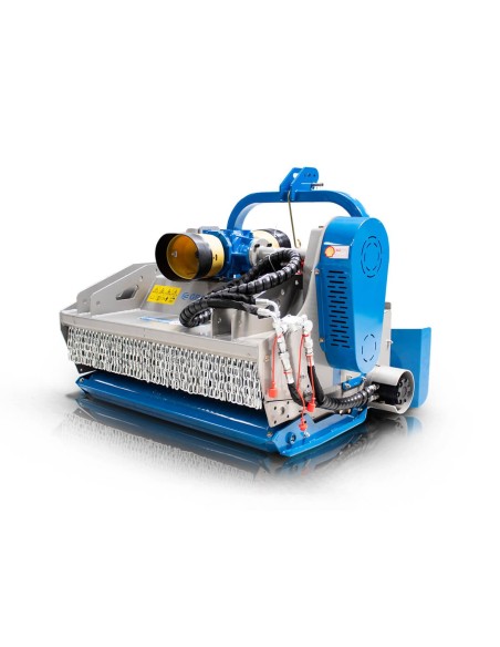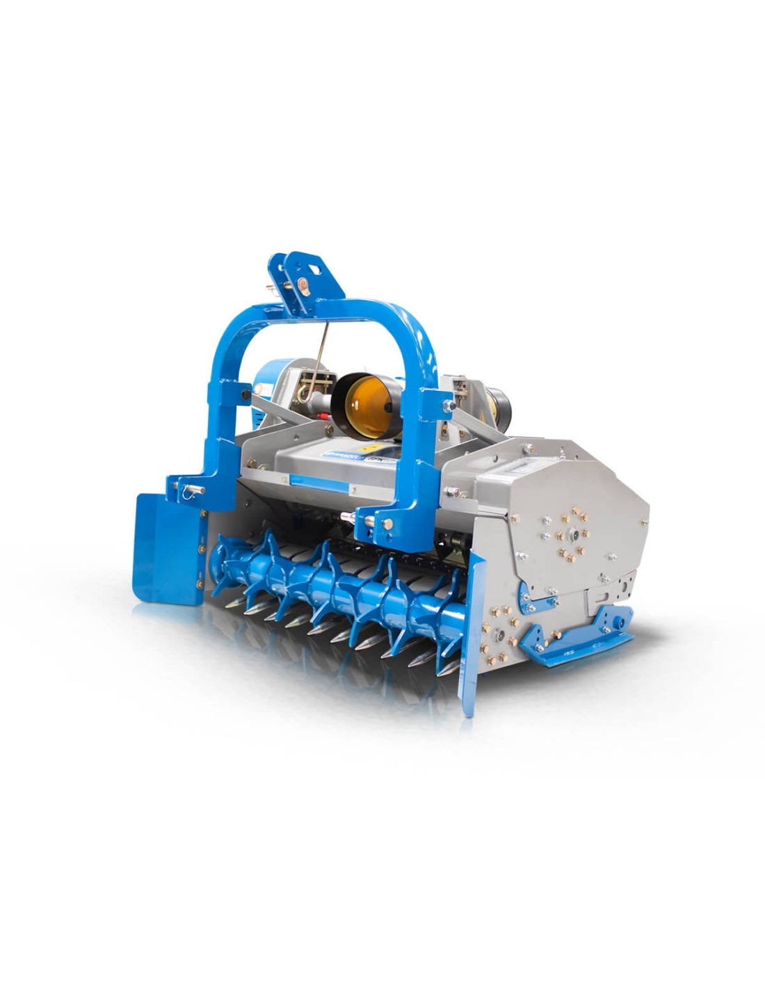 Πλεονεκτήματα και χαρακτηριστικά Μονός προωθητής κλαδιών. Σκάφος 5mm, πλαϊνά 8mm και στροφείο 133x10mm. Διπλής ζεύξης κιβώτιο μετάδοσης κίνησης (γκρουπ) 540 και 1000 r/min. Άθραυστα σφυριά 1400g, ενδείκνυται για διάμετρο κλαδιών εως 7cm. Μακράς διάρκειας ζωής ρουλεμάν SKF. Κόντρες σφυριών στο πάνω και κάτω μέρος του μηχανήματος επιτυγχάνουν τον μέγιστο τεμαχισμό. Ψηφιακά ζυγισμένο στροφείο Προσαρμογή ύψους εργασίας από τα πέδιλα/ γλίστρες. Ρυθμιζόμενο ράουλο στο πίσω μέρος, με ξύστρα. Μετάδοση κίνησης με οδοντωτούς ιμάντες και εξωτερικό τεντωτήρα. Απαιτεί σύνδεση δύο αναμονών σε χειριστήριο ελεύθερης ροής. Διεθνή ζεύξη τριών σημείων κατηγορίας ΙΙ (o 25.0-28.0mm). Ευρωπαϊκό πιστοποιητικό ασφαλείας CE.     *Στην τιμή συμπεριλαμβάνεται ο άξονας κίνησης (PTO) T6-100 με βίδα ασφαλείας.*  Τεχνικά Xαρακτηριστικά Βάρος 812 kg Ίπποι 50 - 100 HP Πλάτος 1800 mm Μήκος 1260 mm Ύψος 1220 mm Πλάτος Εργασίας 1500 mm Μετατόπιση ← mm 750  ||   750 mm  → Σφυριά 16 τεμ. Στροφείο 133*10 mm Ιμάντες 5 Μετάδοση κίνησης προωθητών Καδένα Πάχος κοπής 70 mm