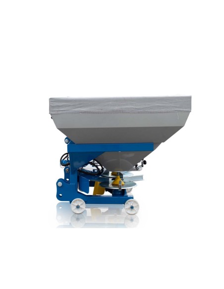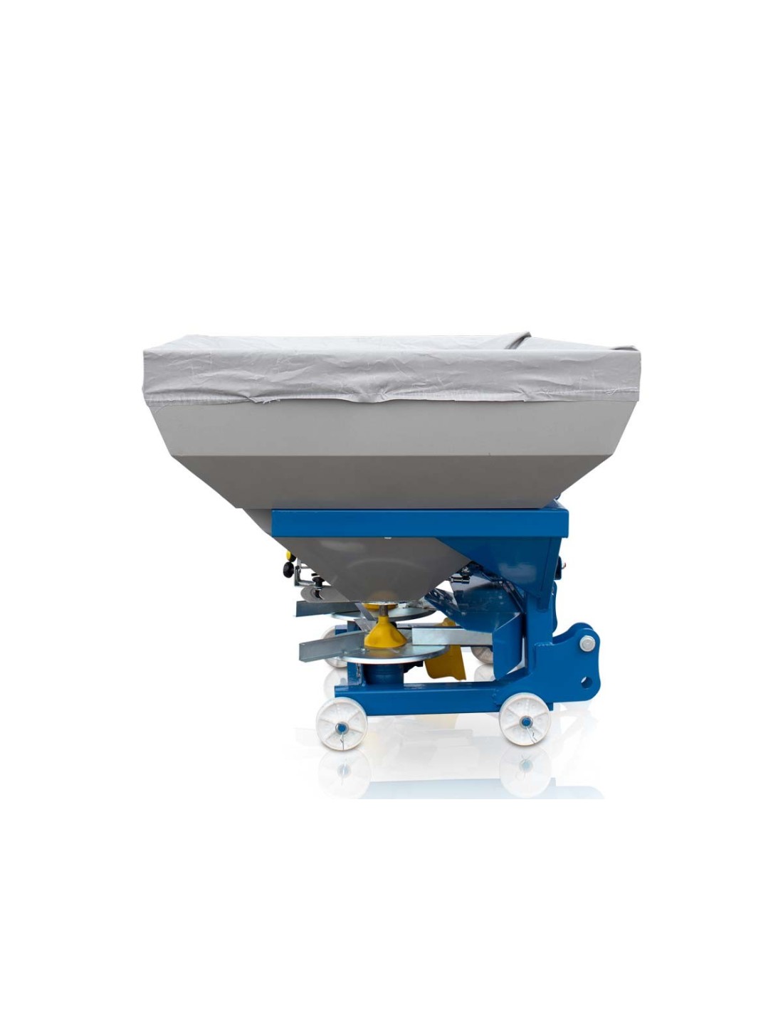 Πλεονεκτήματα και χαρακτηριστικά Κιβώτιο μετάδοσης υψηλών προδιαγραφών 540r/min. Χρήση για εξάπλωση ξηρού, κοκκοποιημένου λιπάσματος και αλατιού. Επίσης μπορεί να χρησιμοποιηθεί για σπορά σιταριού και άλλων σπόρων καθώς και για εκτόξευση αλατιου. Είναι κατασκευασμένο έτσι ώστε να επιτρέπει ομοιόμορφη κατανομή σε όλο το πλάτος. Εξοπλισμένος με οριζόντιο σύστημα μίξερ, το οποίο βοηθάει στην ομαλή ροή λιπάσματος. Εσωτερικός γαλβανιζέ κοχλίας για την καταστροφή σβόλων στη δεξαμενή. Γαλβανιζέ δίσκοι με 6 πτερύγια και πόρτες εξαγωγής υλικού. Μηχανικός ή υδραυλικός έλεγχος των θυρίδων. Διεθνή ζεύξη τριών σημείων. Ευρωπαϊκό πιστοποιητικό ασφαλείας CE. *Στην τιμή συμπεριλαμβάνεται ο άξονας κίνησης (PTO) T2-80 με πλαστικό κάλυμμα.* Τεχνικά Xαρακτηριστικά Βάρος 180 kg Ίπποι 40 HP Πλάτος 1700 mm Μήκος 1150 mm Ύψος 1100 mm Χωρητικότητα 800 λίτρα Απόσταση διανομής 18 - 20 m Δίσκοι 2