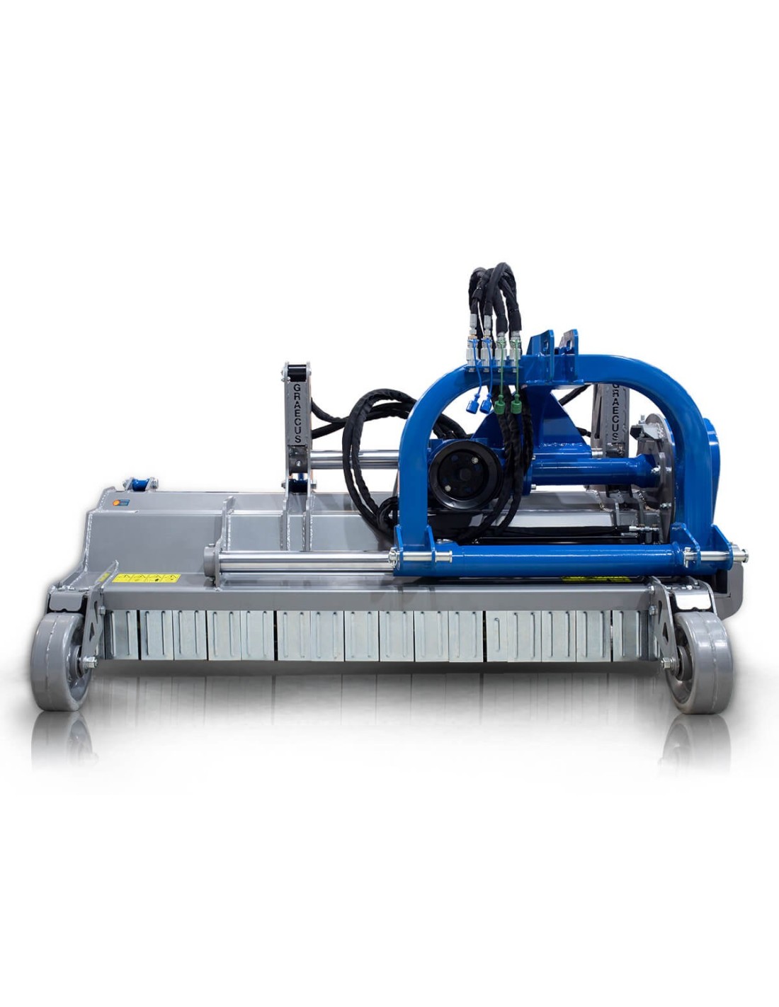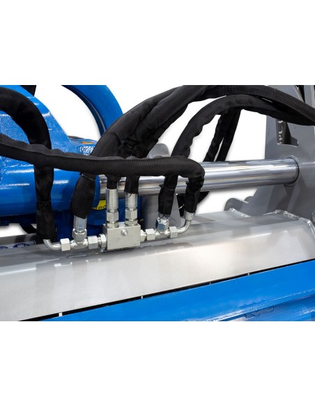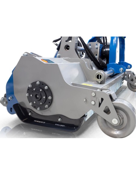 Πλεονεκτήματα και χαρακτηριστικά   Υδραυλικά ανοιγόμενος πίσω θόλος κατάλληλο για χρήση σε κλαδιά μεγάλου όγκου. Καινοτόμος κατασκευή του συστήματος ζεύξης προσφέρει επιπλέον μετατόπιση. Καλύτερη ανίχνευση του εδάφους με δύο εμπρόσθιες ρόδες. Άθραυστα σφυριά 1200g ενδείκνυται για χόρτα και κλαδιά διαμέτρου εως 10εκ. Κιβώτιο μετάδοσης κίνησης (γκρουπ) 540r/min GRAECUS, με καστάνια. Μακράς διάρκειας ζωής ρουλεμάν NSK υπερβαρέως τύπου. Σκάφος με διπλή επένδυση 6 + 6 mm και πλαϊνά 10 mm. Τριπλή σειρά κόντρες σφυριών για την επίτευξη καλύτερου τεμαχισμού. Ψηφιακά ζυγισμένο στροφείο με δύο ελικοειδείς σειρές σφυριών ή μαχαίριών. Εμπρόσθια προστατευτικά λαμάκια. Προσαρμογή ύψους εργασίας από τα πέδιλα/γλύστρες. Ρυθμιζόμενο ράουλο στο πίσω μέρος με ξύστρα. Μετάδοση κίνησης με 5 ιμάντες και εξωτερικό τεντωτήρα. Διεθνή ζεύξη τριών σημείων κατηγορίας Ι-ΙΙ (ø 25.0- 22.0mm/28.0mm). Ευρωπαϊκό πιστοποιητικό ασφαλείας CE.     *Στην τιμή συμπεριλαμβάνεται ο άξονας κίνησης (PTO) T8-95 με πλαστικό κάλυμμα.*    Τεχνικά Xαρακτηριστικά Βάρος 870 kg Ίπποι 85 - 120 HP Πλάτος 2420 mm Μήκος 1210 mm Ύψος 1030 mm Πλάτος Εργασίας 2200 mm Μετατόπιση ← mm 860/1340  ||  360/1840 mm  → Σφυριά 24 τεμ. Μαχαίρια (προαιρετικό) 48 τεμ. Στροφείο 168*10 mm Ιμάντες 5 τεμ.