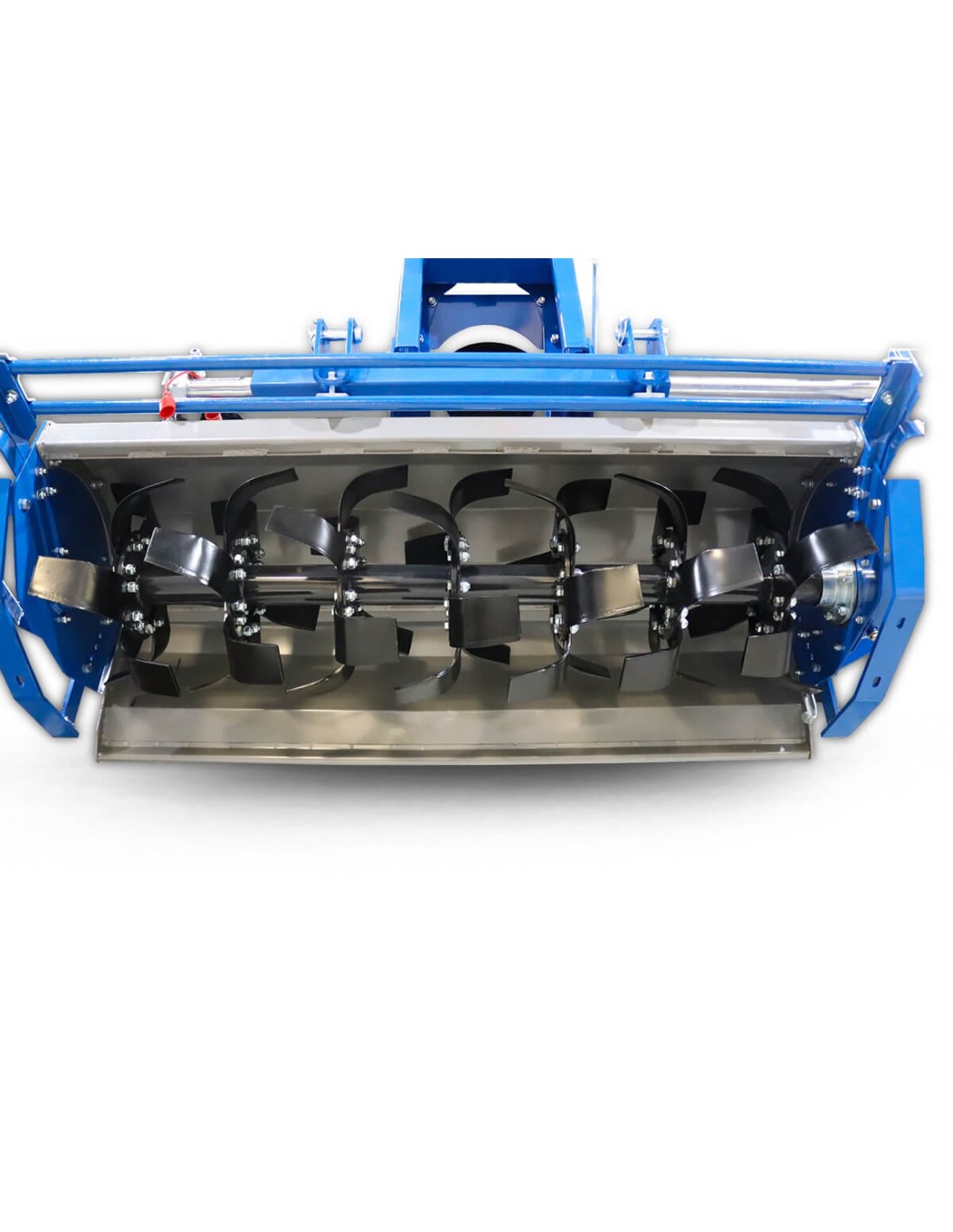 Πλεονεκτήματα και χαρακτηριστικά Καινοτόμος κατασκευή του συστήματος ζεύξης προσφέρει επιπλέον υδραυλική μετατόπιση. Μαντεμένιο κιβώτιο μετάδοσης μιας ταχύτητας ( group) 540r/min. Πλευρικό σύστημα μετάδοσης κίνησης με καδένα σε λουτρο λαδιού και αυτόματο τεντωτήρα. Μακράς διάρκειας ζωής ρουλεμάν. Ρυθμιζόμενη πόρτα στο πίσω μέρος για καλύτερη ισοπέδωση. Ειδικής σκλήρυνσης μαχαίρια 800g. Προσαρμογή βάθους εργασίας από τα πέδιλα/γλύστρες. Βάση στήριξης. Διεθνή ζεύξη τριών σημείων - κατηγορίας I (ø 19.0-22.0mm). Ευρωπαϊκό πιστοποιητικό ασφαλείας CE.   *Στην τιμή συμπεριλαμβάνεται ο άξονας κίνησης (PTO) T5-80 με συμπλέκτη θερμουίτ.*    Τεχνικά Xαρακτηριστικά Βάρος 336 kg Ίπποι 30 - 60 HP Πλάτος 1850 mm (1520) Μήκος 800 mm (800) Ύψος 1060 mm (1060) Πλάτος Εργασίας 1400 mm Μετατόπιση ← mm 1120/280  ||  220/1180 mm  → Μαχαίρια 18 + 18 τεμ. Σειρές μαχαιριών 6 Βάθος εργασίας 100 - 200 mm