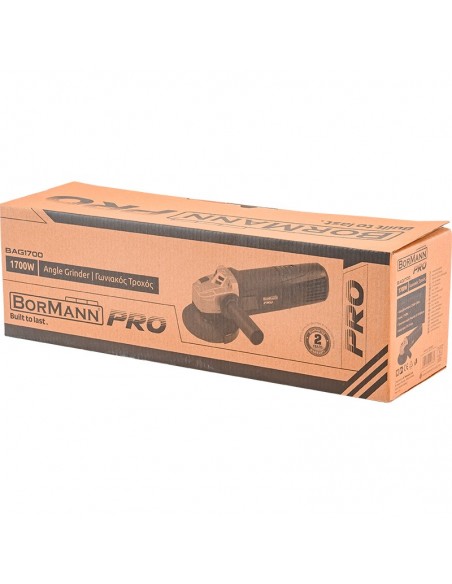 Blank page\n\nΓωνιακός Τροχός BORMANN PROΤροχός υψηλής ισχύος και μεγάλης ταχύτητας. Διαθέτει πλαϊνή λαβή τριών θέσεων για μεγαλύτερη άνεση σε εκτεταμένη χρήση, μαζί με προστατευτικό. Διαθέτει , επίσης, διακόπτη με κλείδωμα στροφών και σύστημα προστασίας για αποφυγή ατυχήματος. Ένα εργαλείο με εξαιρετική αναλογία βάρους ισχύος. Μεγάλης Ισχύος 1700w Κινητήρας Υψηλής Ισχύος με Ρυθμιστή Ταχύτητας Μέγιστη Σχέση Ισχύος Προς Βάρος και Κορυφαίο Ζύγισμα Μέγιστη Διάμετρος Δίσκου : Φ 125mm