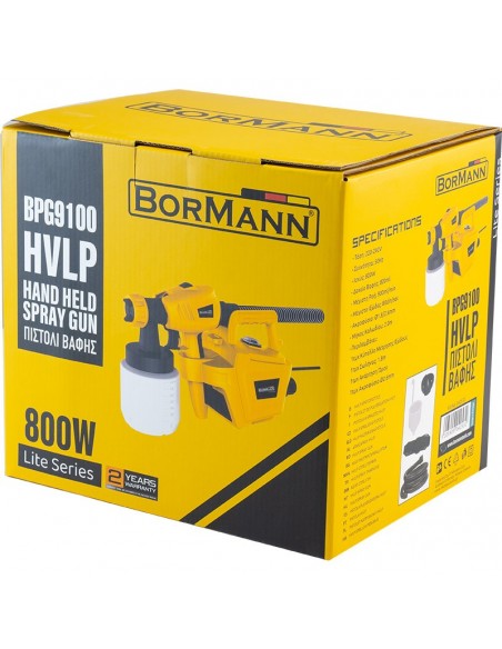 Blank pageΠιστόλι βαφής ηλεκτρικό HVLP 800w απο τη Bormann LiteΜε το ηλεκτρικό πιστόλι βαφής της Bormann Lite μπορείτε να βάψετε με επαγγελματικό τρόπο οποιαδήποτε επιφάνεια του σπιτιού αλλά όχι μόνο!Βάψτε εύκολα, γρήγορα και με επαγγελματικό τρόπο τοίχους, περσίδες, έπιπλα, τούβλα, γυψισανίδες, πόρτες κ.α.Ανακαινίστε μόνοι σας ολόκληρο το σπίτι, το εξοχικό, την επιχείρηση σας χωρίς να κουραστείτε.Βάφει εύκολα μεγάλες και δύσκολες επιφάνειες όπως φράχτεςΤάση λειτουργίας: 220 V (household electricity)Περιλαμβανει Ακροφυσιο: Φ1.8/2.6mm - 1τμχ Κυπελλο Μετρησης Ιξωδους- 1τμχ 1.8m Σωληνας- 1τμχ Αναρτηση Ωμου