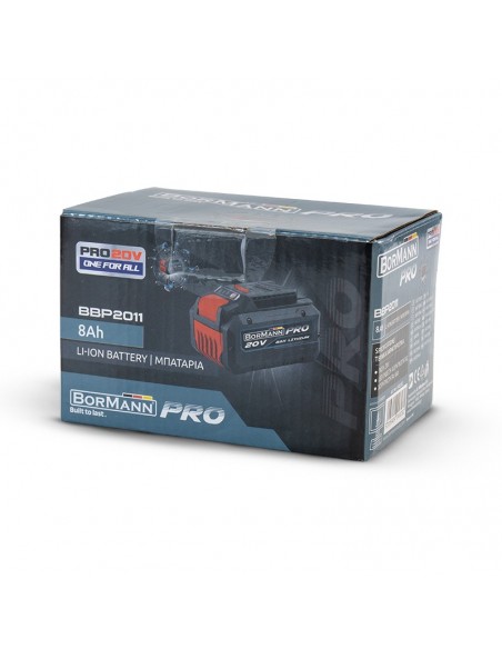 Blank pageΜπαταρία της BORMANN PROΕίναι ιδανική για εργαλεία υψηλών απαιτήσεων,που χρειάζονται περισσότερο χρόνο λειτουργίας.Mε λυχνία επιπέδου ενέργειας σάς επιτρέπει να δείτε την υπολοιπόμενη ενέργεια που απομένει για να εργαστείτε. Συμβατό με την πλήρη σειρά μπαταριών Bormann Pro 20-Volt.