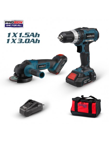 Blank page\nΤο σετ περιλαμβάνει: Δραπ/βιδο Μπαταρίας 20V της Bormann ProΝέας Γενιάς Μοτέρ 2 Ταχυτήτων για Όλους τους Τύπους ΕργασίαςΓωνιακός Τροχός Φ125 20V της Bormann Pro O τροχός διαθέτει ισχυρό κινητήρα. Μπορείτε να επιτύχετε τον μέγιστο έλεγχο με τη λαβή 3 θέσεων. Επιπλέον, μπορείτε να προσαρμόσετε το προστατευτικό ώστε να ταιριάζει σε ποικιλία εφαρμογών που απαιτούν διαφορετικές γωνίες κοπής.2x Μπαταρίες 20V 1.5Ah ,3.0Ah απο την Bormann Pro Mε λυχνία επιπέδου ενέργειας σας επιτρέπει να δείτε την υπολειπόμενη ενέργεια που απομένει για να εργαστείτε, Led Ενδειξη Υπολειπόμενης Φόρτισης.Ταχυφορτιστής 20V - 2,4Ah της Bormann Pro1 Ωρα Φόρτιση σε Μπαταρία 2000 mAh Tσάντα Εργαλείων από την BormannΥψηλής Ποιότητας και Μεγάλης Αντοχής Ύφασμα, Άνετη και Γερή ΛαβήΔιαστάσεις τσάντας : 50x40x40cm