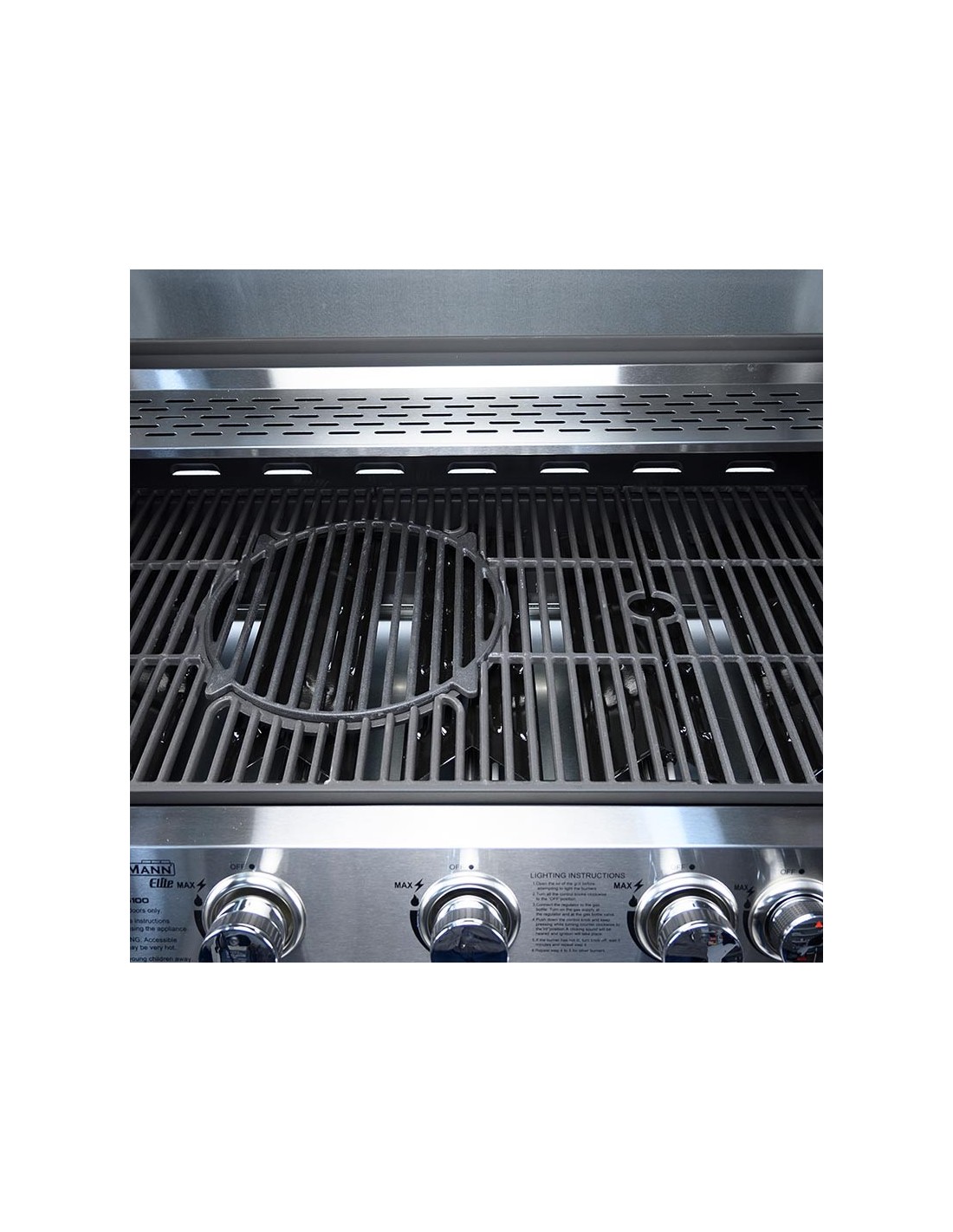 Blank pageΨησταριά Υγραερίου PRIME 5+1 εστιών LUXURY TYPE, απο την BORMANN ELITE με μαντεμένια σχάρα, ρόδες\nγια εύκολη μεταφορά και μεγάλο θερμόμετρο στο καπάκι, δίσκο συγκράτησης λίπους, ειδική σχάρα διατήρησης θερμοκρασίας. Επίσης διαθέτει 2 ράφια στις\nπλευρές και πιεζοηλεκτρικό άναμμα εστιών.\n\n*Δεν συμπεριλαμβάνονται ο ρυθμιστής πίεσης και η σωλήνα.