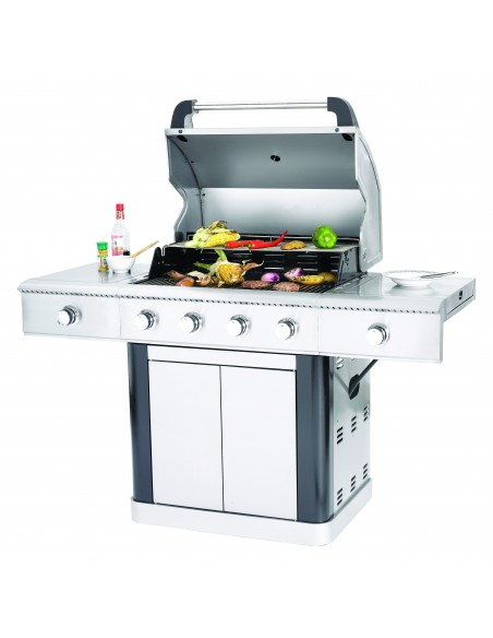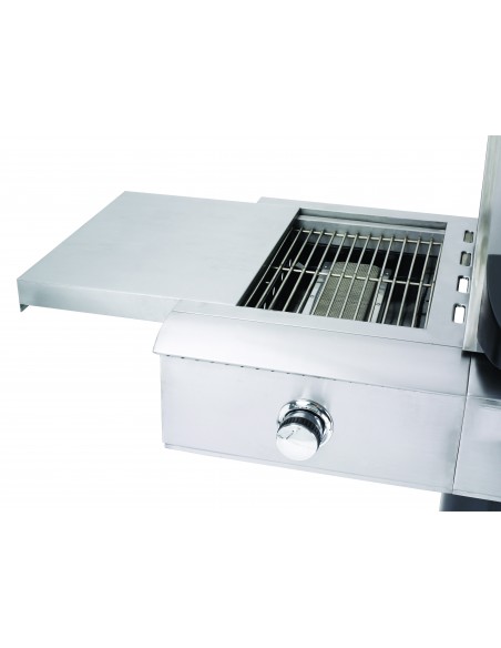 Blank pageΨησταρία Υγραερίου από την BORMANN ELITEΨησταρία Υγραερίου & Υπερύθρων Zenith 4+2 εστιών με Ανοξείδωτη Σχάρα και Εμαγιέ επικάλυψη εστίαςΚεντρική Εστία: 4 x 4.1kWAριστερή Εστία Υπερύθρων: 1 x 2.6kWΕστία Δεξιάς πλευράς: 1 x 3.5kWΎψος ψησίματος: 92cmΚεντρική εστία Ψησίματος: 71 x 49.5Συνολικό Εμβαδόν Ψησίματος: 3710 cm²Με Ρόδες για Εύκολη ΜεταφοράΜεγάλο Θερμόμετρο στο ΚαπάκιΔύο Ράφια στις ΠλευρέςΠιεζοηλεκτρικό Άναμμα ΕστιώνΔεν περιλαμβάνει Ρυθμιστή Πίεσης και Σωλήνα