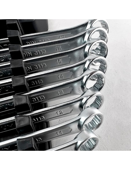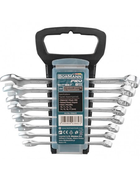 \n\nΣετ\nΓερμανοπολύγωνα 8 τεμαχίων από τη Bormann Pro, υλικό χρώμιο- βανάδιο, κυρτό.\n\nΜεγέθη (mm): 10, 11, 12, 13, 14, 15, 16, 17\n\n \n\n