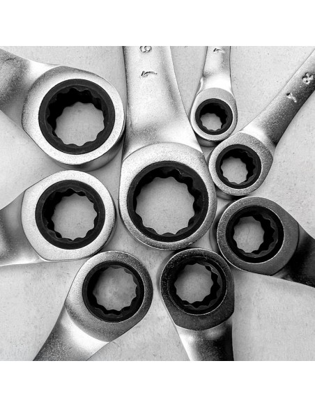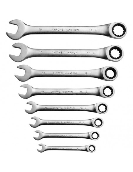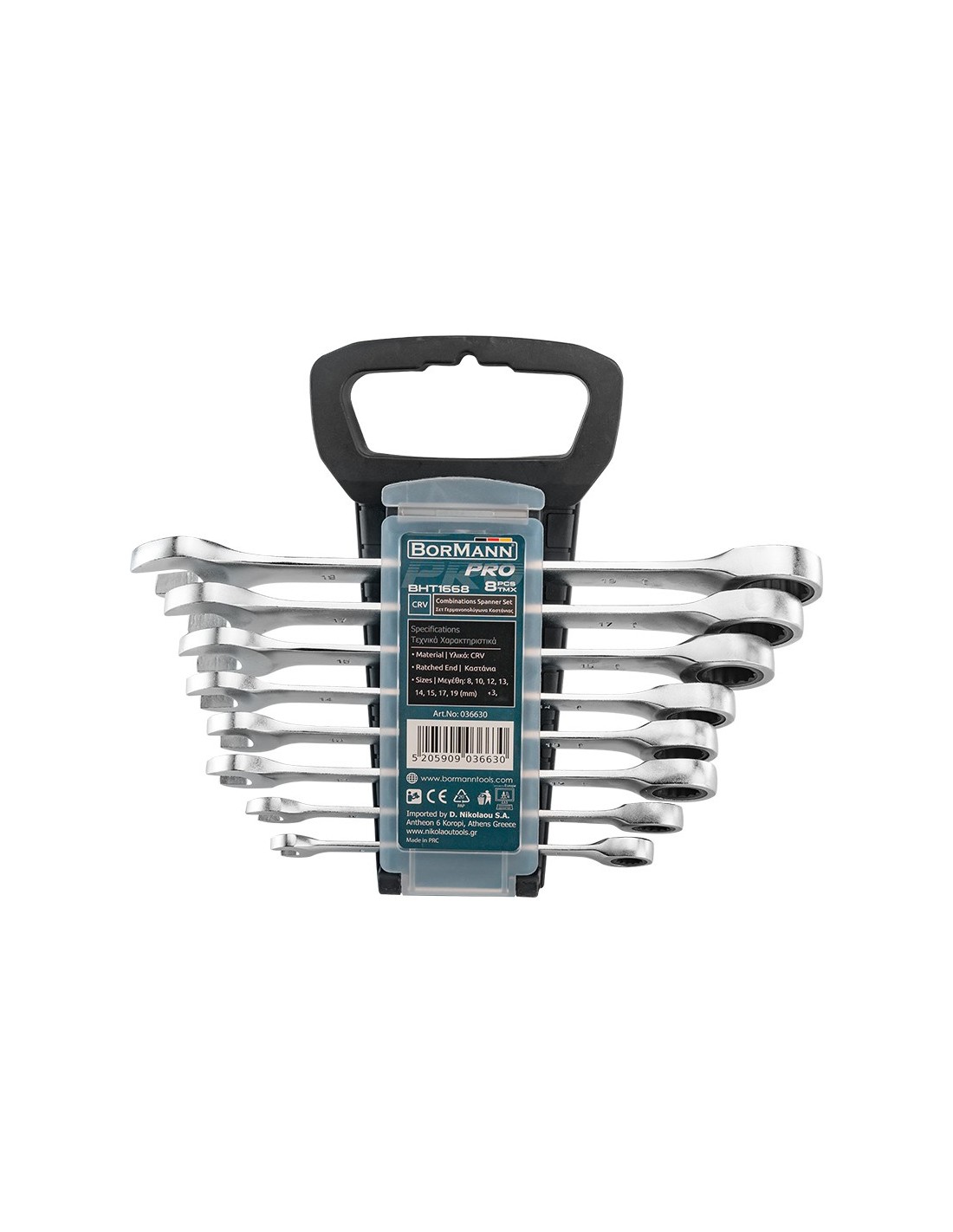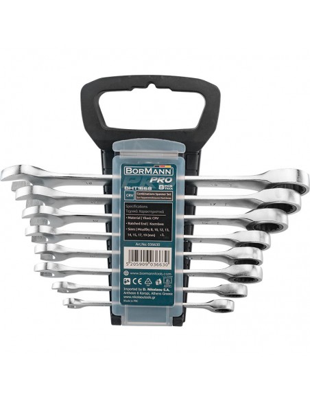 Σετ Γερμανοπολύγωνα Καστάνιας 8 τεμαχίων  από τη Bormann Pro, υλικό χρώμιο- βανάδιο, ίσιο.Μεγέθη (mm): 8, 10, 12, 15, 17, 19