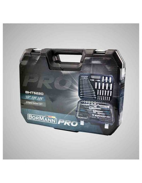 Blank page\n\n\n Κασετίνα με Καστάνια και Καρυδάκια απο την Σειρά PRO της BORMANN. \n\n• Υλικό Κατασκευής Χρώμιο -\nΒανάδιο \n\n• Χρωμιωμένα \n\n• Εμπεριέχονται :\n\n\n \n \n 30 Τεμάχια -\n 1/4\" Bit Sockets: PH0,1,2 PZ0,1,2 FD4,5.5,6.5,7 H3,4,5,6\n T8,9,10,15,20,25,27,30 TT8,9,10,15,20,25,27,30\n 10 Τεμάχια - 3/8\" Καρυδάκια\n :10,11,12,13,14,15,16,17,18,19mm,28L\n 6 Τεμάχια - 3/8\" Καρυδάκια\n Torx:E10,E11,E12,E14,E16,E18\n 6 Τεμάχια - 3/8\" Βαθιά Καρυδάκια :10,11,12,13,14,15mm\n 1 Τεμάχιο -\n 3/8\" Μπουζόκλειδο\n :21mm\n 1 Τεμάχιο - 3/8\" Αντάπτορας\n Για Μύτες \n 1 Τεμάχιο - 3/8\" Αντάπτορας\n Σπαστός \n 1 Τεμάχιο -3/8\" Επέκταση\n : 5\"\n 1 Τεμάχιο - 3/8\" Καστάνια\n \n 14 Τεμάχια - Καρυδάκια 1/2\":13,14,15,16,17,18,19,20,21,22,24,27,30,32mm\n 3 Τεμάχια -\n 1/2\" Torx Socket:E20,E22,E24\n 5 Τεμάχια -\n 1/2\" Βαθιά\n Καρυδάκια:16,17,18,19,22MM,77L\n 2 Τεμάχια - 1/2\" Επεκτάσεις\n :5\"&10\"\n 1 Τεμάχιο - 1/2 Αντάπτορας Τριπλός\n \n 1 Τεμάχιο - 1/2\" Αντάπτορας\n Σπαστός\n 1 Τεμάχιο - 1/2\" Αντάπτορας\n Για Μύτες\n 2 Τεμάχια - 1/2\" Spark Plug\n Socket:16mm & 21mm\n 1 Τεμάχιο -1/2\" Καστάνια . \n 30 Τεμάχια - Bits (8MM):H5.5,6,6.5,7,8,10,12 SL6,6.5,8 PH3,4 PZ3,4 T27,30,35,40,45,50 TT27,30,35,40,45,50 M5,6,8,10\n 2 Τεμάχια -\n 1/2\" Bit Sockets: T55,T60\n 12 Τεμάχια Πολύγωνα\n :8,9,10,11,12,13,14,15,16,17,18,19mm\n 7 Τεμάχια -\n Hex Key Wrenches 1,1.5,2,2.5,3,4,5mm\n 44 Τεμάχια -\n Bits(6.35mm):M5,6,8,10,12 PH0,1,2,3 PZ0,1,2,3 SL4,5.5,6.5,7\n H2,2.5,3,4,5,6,7 SP4,6,8,10 TW1,2,3,4 TT8,10,15,20,25,27,30,40,45\n TO6,8,10\n 1 Τεμάχιο – Κατσαβίδι \n \n \n\n\n \n\n