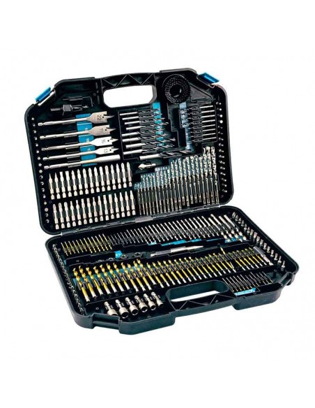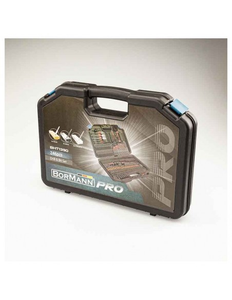 Blank page\n\nΣετ Τρυπάνια, Ποτηροτρύπανα & Καρυδάκια της BORMANN PRO\n\n\n Κατασκευασμένα από Τιτάνιο HRC Steel 63-65 \n\n\n\n Μύτες Με Επισκλήρυνση HRC 58-62\n \n \n 57 Τεμάχια Τρυπάνια Μετάλλου : 1x6,1.5x6,2x6,2.5x6,3x7,3.2x6,3.5x4,4x4,4.5x1,4.8x1,5x4,5.5x2,6x2,6.5x2\n 30 Τεμάχια Τρυπάνια Τοιχοποιίαςl:1x3,1,5x3,2x3,2.5x3,3x4,3.2x3,3.5x3,4x4,5.5x2,6.5x2,m2 \n 17 Τεμάχια Τρυπάνια Ξύλου / Πλαστικού :3mmx4,4mmx4,5mmx3,6mmx2,7mmx1,8mmx2,10mmx1,\n 4 Τεμάχια Τρυπάνια Φτερού :13,16,19,22\n 1 Τεμάχιο Επέκταση 6\"\n 21 Τεμάχια Τρυπάνια Τοιχοποιίας :3mmx2,4mmx2, 4.5mmx2,5mmx2,5.5mmx2,6mmx3,6.5mmx2,7mmx3,8mmx1,9mmx1,10mmx1 με Μύτη Καρβιδίου \n 4 Τεμάχια Αποστάτες Τρυπανιού:3,5,6,8mm\n 66 Τεμάχια Μύτες 25mm(l):sl3x2,\n sl4x2,sl5x2,sl6x2, sl7x2,ph0x2,ph1x3,ph2x4,ph3x3,pz0x2,pz1x3,pz2x4,pz3x3\n t10 t15 t20 t25 t27 t30 t35 t40 h5/64\" h3/32\" h1/8\"\n h5/32\" h3/16\" h1/4\" h2 h2.5 h3 h4 h5 h6\n Square:#0x2,#1x3,#2x4,#3x3\n 30 Τεμάχια 50mm(l)\n bit:sl3,sl4,sl5,sl6,ph1x2,ph2x3,ph3x2,pz1x2,pz2x3,pz3x2 ,t15,t20,t25,t30,h3,h4,h5,h6,\n Square:#1,#2x2,#3\n 6 Τεμάχια Μύτες Καρυδάκια:6,7,8,9,10,11mm,cr-v \n 2 Τεμάχια Allen : 2.5mmx2,\n 1 Τεμάχια Φρεζά \n 4 Τεμάχια Ποτηροτρύπανα:32,38,45,54mm\n 1 Τεμάχιο Αντάπτορας για Ποτηροτρύπανα \n 1 Τεμάχιο Πόντα\n Κεντραρίσματος \n 1 Τεμάχιο Αντάπτορας\n για Μύτες 58mm\n \n\n\n \n\n