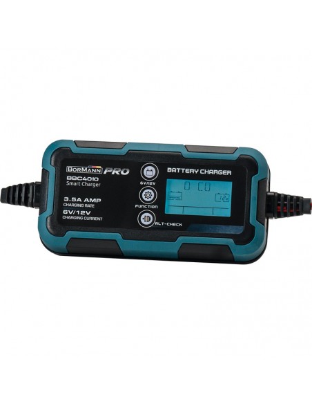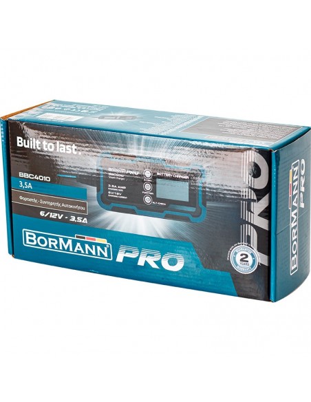 Blank pageΦορτιστής - Συντηρητής της BORMANN PROΦορτιστής και συντηρητής μπαταριών αυτοκινήτου με λυχνία σφάλματος λειτουργίας, χειροκίνητη εναλλαγή για μπαταρίες 6V και 12V καθώς και λειτουργία μνήμης με οθόνη LCD.• Λειτουργία Cold/AGM • 12V Λειτουργία Επισκευής 1.5A • Για όλες τις Μπαταρίες Μολύβδου 6V&12V\n(WET/MF/CA/EFB/GEL/AGM) και Λιθίου 12VΤάση Εισόδου 220V AC, 50/60Hz, 0.8A, 60W MAX\nΤάση Εξόδου 6VDC, 3.5A , 2VDC, 3.5A/1A • Χωρητικότητα Μπαταρίας 2-120Ah(6V), 1.2-120Ah(12V)\n• Ελάχιστη Xαμηλότερη Φόρτιση 3V • Τύπος Φόρτισης 8 Θέσεις & Αυτόματη\nALT-Check Προστασία IP54