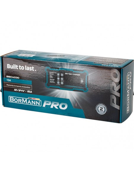 Blank pageΦορτιστής - Συντηρητής της BORMANN PROΦορτιστής και συντηρητής μπαταριών με λειτουργία χειροκίνητης εναλλαγής για μπαταρίας 12V και 24V και λειτουργία μνήμης με οθόνη LCD. Διαθέτει ειδική λυχνία σφάλματος λειτουργίας.• Λειτουργία Cold/AGM • 12V/24 Λειτουργία Επισκευής 1.5A • Για όλες τις Μπαταρίες Μολύβδου 12V&24V (WET/MF/CA/EFB/GEL/AGM) και Λιθίου 12VΤάση Εισόδου 220V AC, 50/60Hz, 0.8A, 60W MAX Τάση Εξόδου 12VDC, 15A, 24VDC, 7.5A, 12VDC, 20A, 300S(Boost)• Χωρητικότητα Μπαταρίας 50-400Ah(12V), 25-200Ah(24V) • Ελάχιστη Xαμηλότερη Φόρτιση 3V • Τύπος Φόρτισης 8 Θέσεις & Αυτόματη ALT-Check & CCA Προστασία IP54