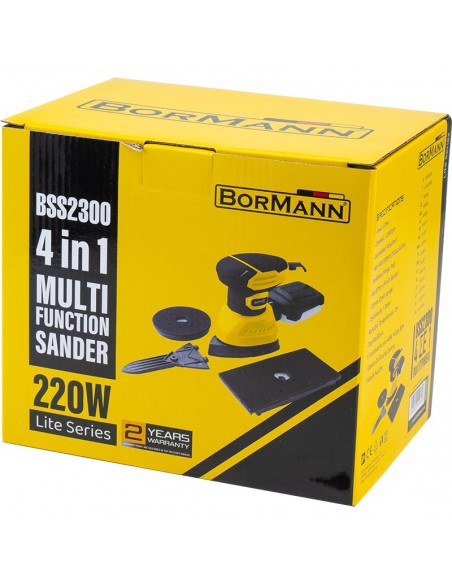 Blank pageΤριβείο Έκκεντρο/Παλμικό/Δέλτα από την Bormann LiteΤο BSS2300 είναι ενα ευέλικτο τριβείο εξοπλισμένο με μοτέρ 220W και με σύστημα αναρρόφισης σκόνης. Χάρη στα 4 προσαρτήματα λείανσης που περιλαμβάνει επιτρέπει ενα ευρύ φάσμα εργασιών. Λείανση μεγάλων επιφανειών και γωνιών μέχρι τη λείανση ακόμη και των πιο δυσπρόσιτων σημείων.