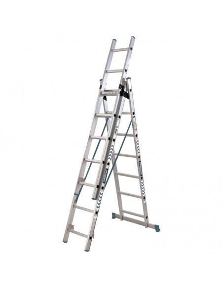 Blank pageΣκάλα Αλουμινίου Τριπλή της BORMANN PROΑναπτυσσόμενη σκάλα, κατασκευασμένη από αλουμίνιο υψηλής αντοχής για μεγαλύτερη ανθεκτικότητα στις καθημερινές επαγγελματικές χρήσεις. Ιδιαίτερα πρακτική καθώς μπορεί να χρησιμοποιηθεί είτε σε πλήρη ανάπτυξη, είτε σε σχήμα \"Λ\" ανάλογα με τον τύπο της εργασίας. Διαθέτει ιμάντα σταθεροποίησης 90 εκατοστών για ασφαλή χρήση.