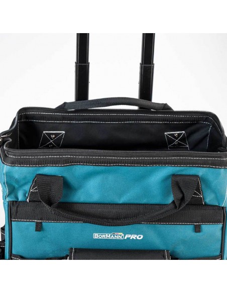 Blank pageΤσάντα Εργαλείων Υφασμάτινη Τροχήλατη της BORMANN PROΚατασκευασμένη από αδιάβροχο 600D Oxford ύφασμαΜεταλλικά χερούλιαΔιαστάσεις Μ44xΠ26xΥ41cm