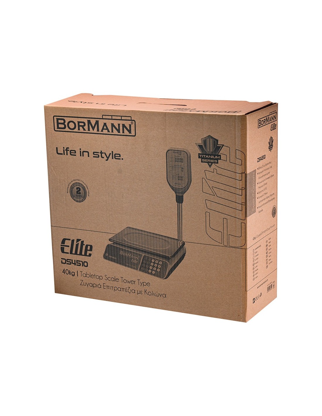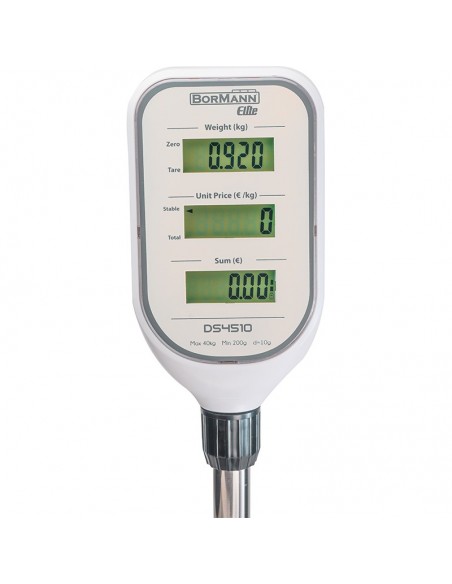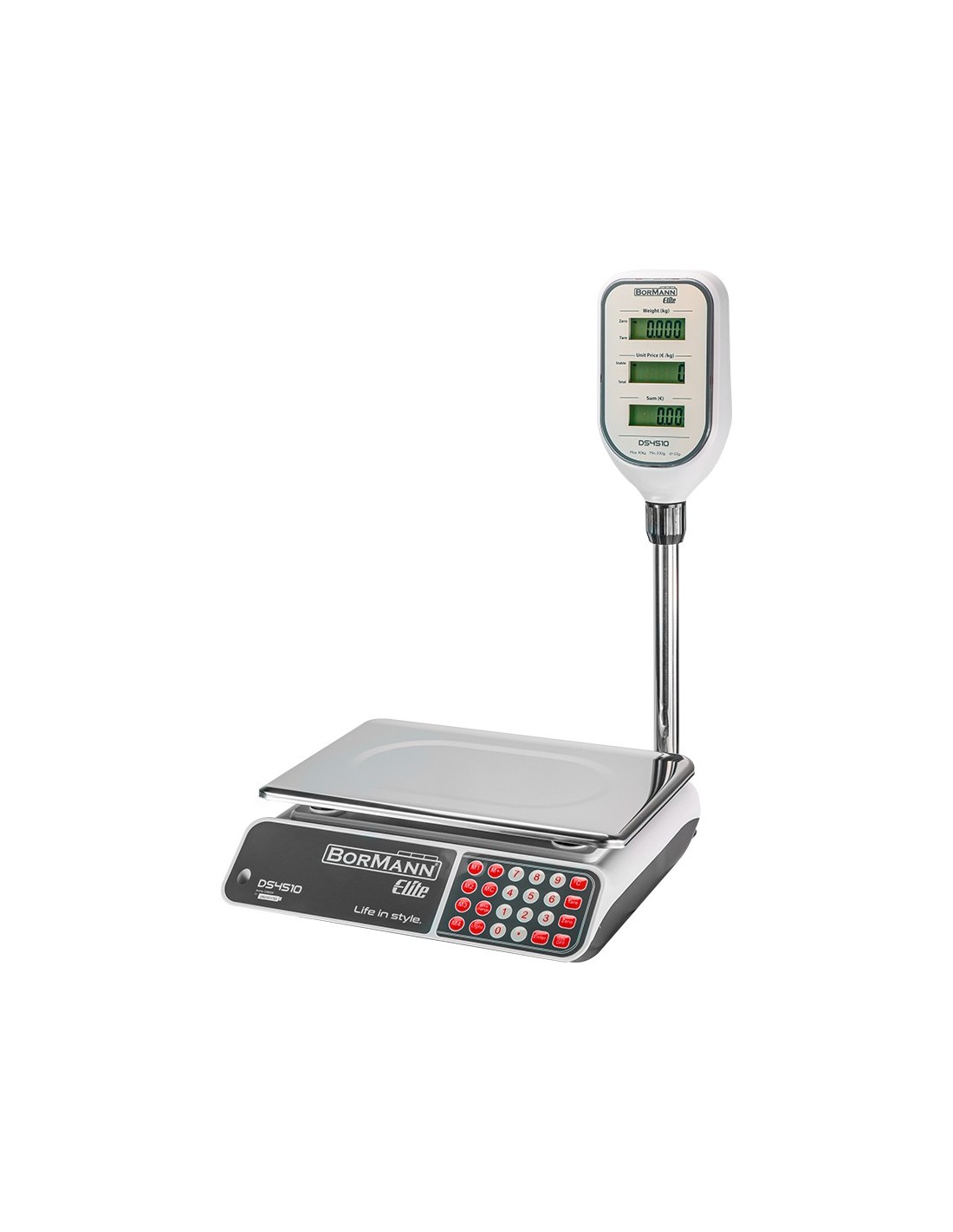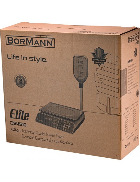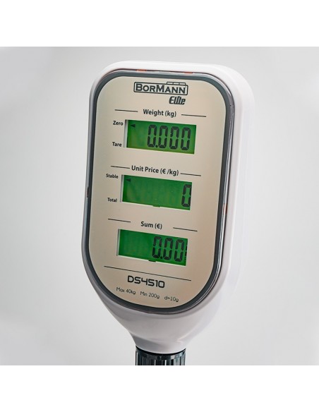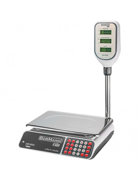 Blank pageΕπιτραπέζια Ζυγαριά με Κολώνα της BORMANN ELITEΨηφιακή ζυγαριά 40 κιλών με κολώνα διπλής οθόνης με υπολογισμό συνόλου αξίας.Ιδανική για ΕΡΓΑΣΤΗΡΙΑΚΗ χρήση (φούρνους,ζαχαροπλαστεία, εργαστήρια, ζύγιση δεμάτων κλπ). Διαθέτει ανοξείδωτη πλατφόρμα και αδιάβροχο πληκτρολόγιο. Οι ενδείξεις φαίνονται και από τις δύο πλευρές του ζυγού για ευκολία στον χρήστη.Προσφέρει λειτουργίες μηδενισμού, απόβαρου, μεικτού - καθαρού βάρους και ελέγχου ζύγισης καθώς και μνήμη.•Οθόνη: φωτιζόμενη LCD•Μέγιστη ζύγιση 40 κιλά•Ελάχιστη μέτρηση 5 γραμμάρια•Λειτουργεί στην πρίζα με μετασχηματιστή•Με επαναφορτιζόμενη μπαταρία 4V/4AH για λειτουργία και χωρίς ρεύμα